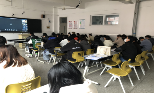 按照学校统一部署,3月22日上午管理学院1、2节课全部进行线上直播教学,其中2020级旅游管理班李贝贝老师的《旅游商品概论》采用教师在家线上授课,学生到教室观看大屏幕直播的形式学习。