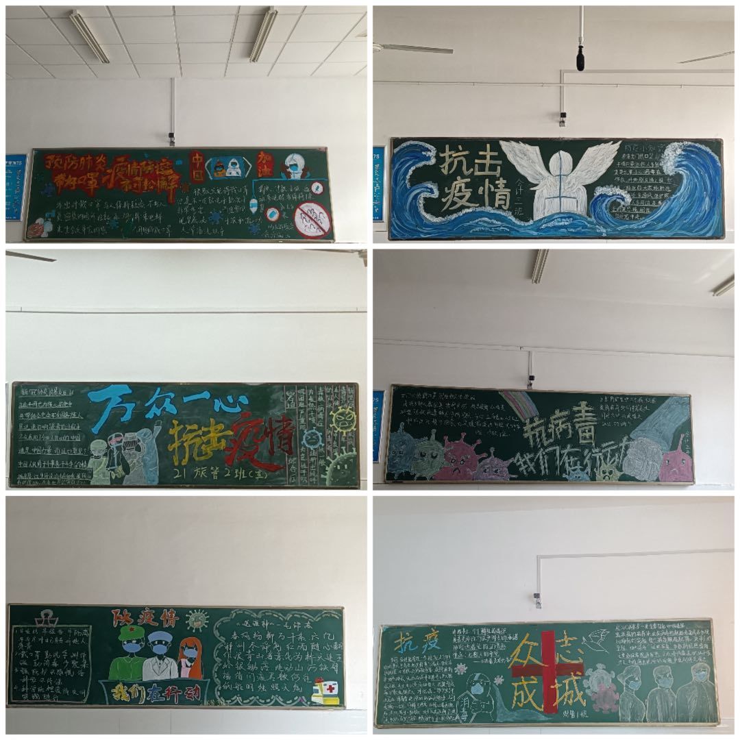每个班级都积极准备,认真落实本次活动。一幅幅黑板报主题鲜明、内容充实、图文并茂、色彩搭配和谐自然。各班级提交的黑板报作品科普了一条条抗疫知识,展示了一幕幕抗疫场景,谱写了一段段抗疫故事,展现了当代青年们向抗疫英雄学习致敬的精神文明风貌。