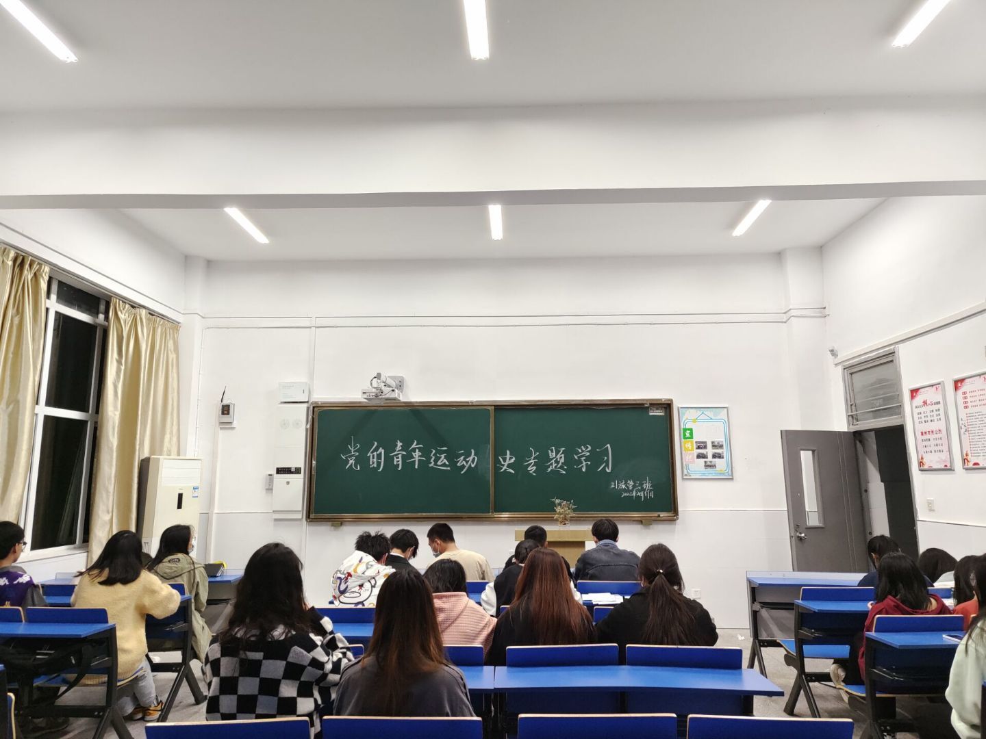 各班团支书带领支部全体同学们回顾了中国共产党领导广大青年在革命、建设、改革不同历史时期接续奋斗、建功立业的历程,重温了五四运动时期青年学子为救亡图存而不屈不挠的奋斗历程,并表示无论过去、现在还是未来,中国青年始终是实现中华民族伟大复兴的先锋力量。
