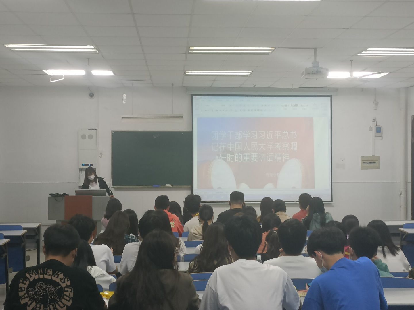为了进一步提高团学干服务意识与能力,发挥团学干在团青年中的模范带头作用,时值青年节到来之际,管理学院团总支于2022年5月1日晚上召开团学干部学习习近平总书记在中国人民大学考察调研时的重要讲话精神座谈会。本次座谈会由管院团总支副书记罗颖负责,管院21级团学干参加。