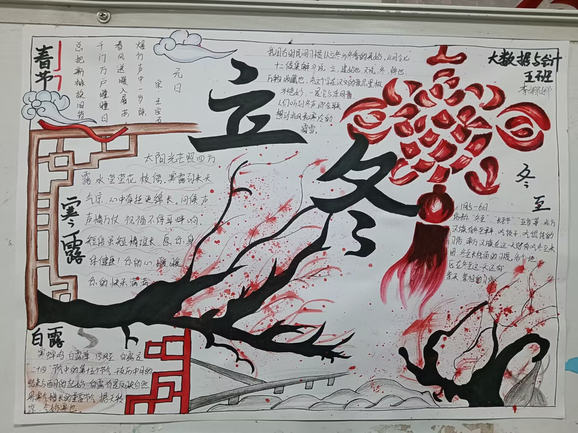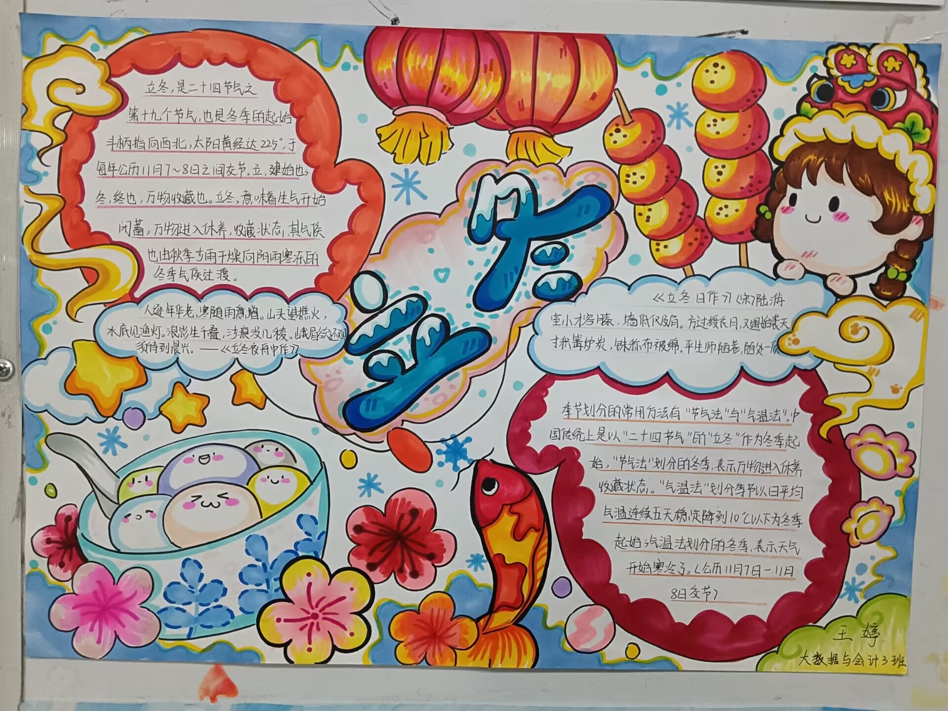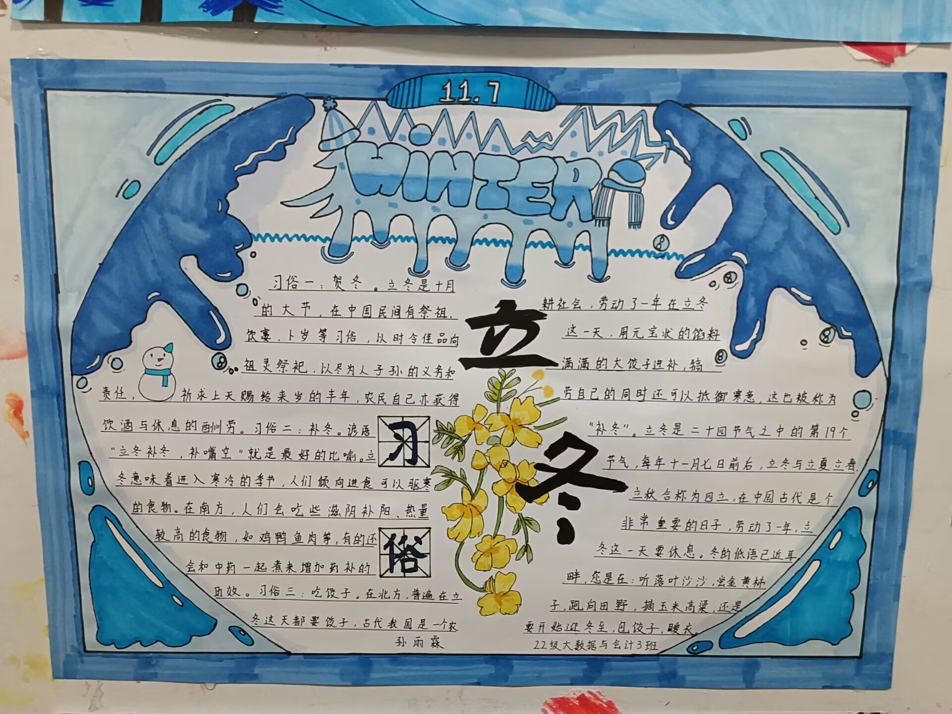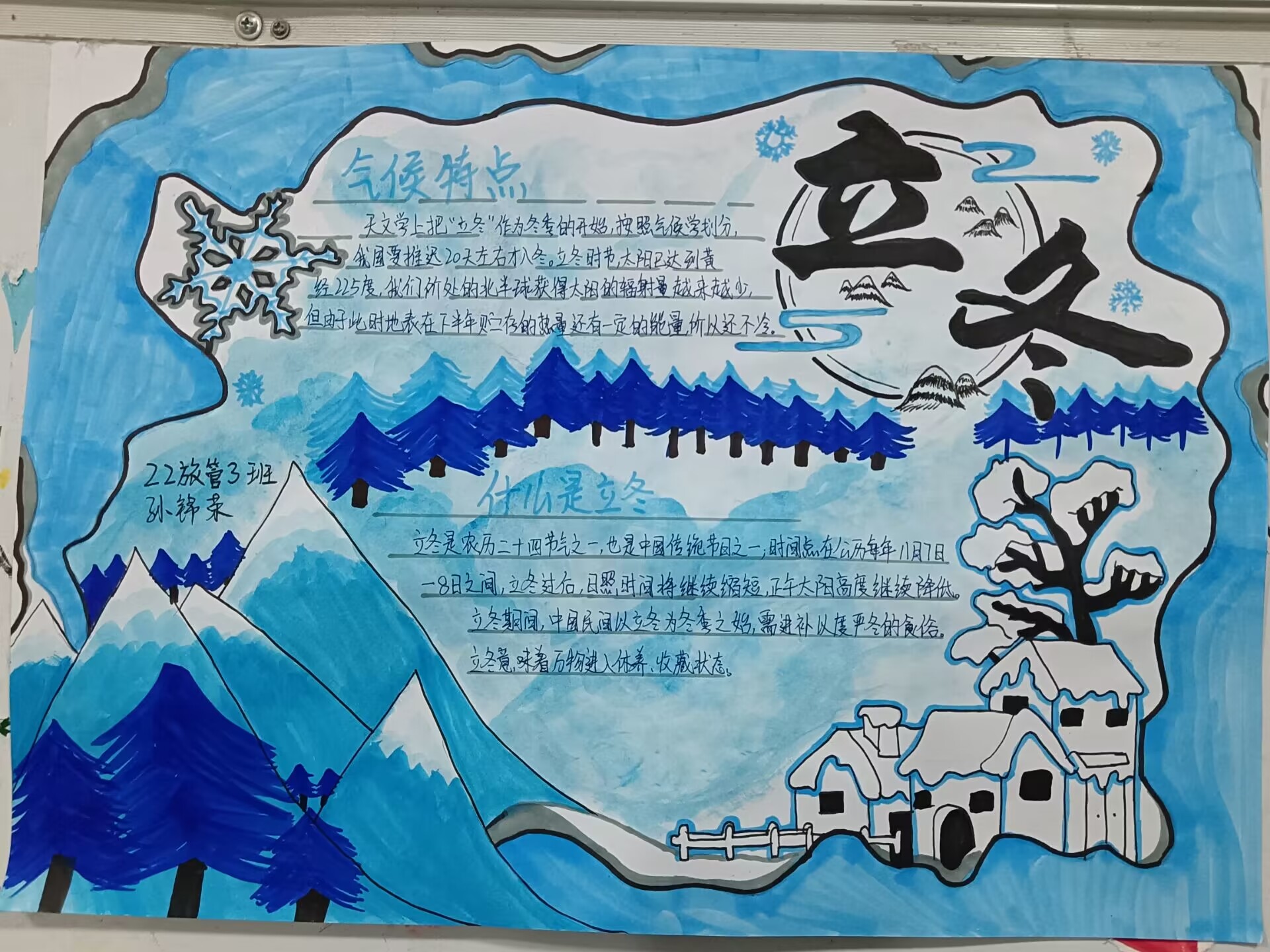 立冬表示冬季自此开始,为迎接冬季的来临,弘扬中华优秀传统文化,管理学院举办了“知岁一寒,立藏于冬”的手抄报活动。