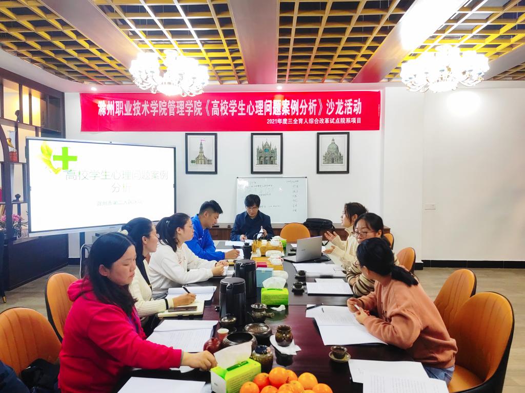 为进一步提升辅导员业务能力和工作水平,11月10日晚,由管理学院主办、管理学院“蝴蝶的梦想”心理健康成长基地承办的《高校学生心理问题分析》沙龙活动在致真楼1602举行,该活动为校2021年度“三全育人”综合改革院系试点项目子活动,管理学院、交通运输学院全体专职辅导员、国家二级心理咨询师、商学院商务英语教研室程诚副教授参加了此次活动,活动由管理学院党总支副书记何文婧主持。