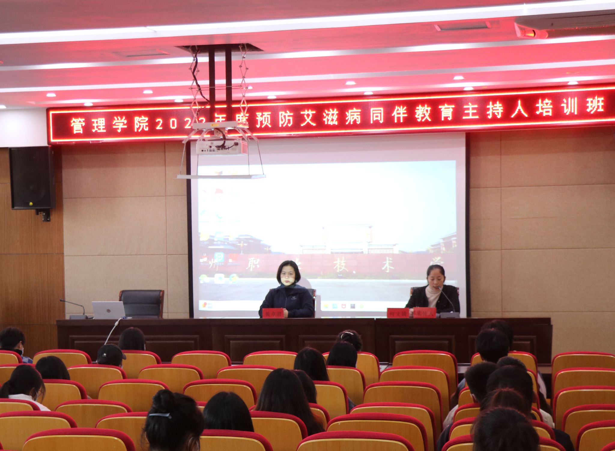 为了全面落实立德树人根本任务,深化管理学院“三全育人”综合改革试点工作,帮助同学们树立正确的恋爱观,科学的普及性知识,管理学院于11月15、17、18日在南阶205举办预防艾滋病同伴教育主持人培训班,来自管理学院、交通运输学院及商学院的50名班级骨干参加了此次培训,开班仪式由管理学院党总支副书记何文婧主持。