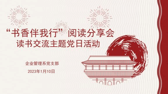 为进一步推进党员理论学习常态化,积极营造“崇尚知识、崇尚阅读”的浓厚氛围,1月10日,企业管理系党支部举行了线上“书香伴我行”阅读分享会读书交流主题党日活动。活动由企业管理系党支部书记张明珠主持。支部党员对《你心柔软却有力量》《圆圈正义》《底层逻辑》等书籍进行介绍和分享,畅谈自己的阅读心得和思考。