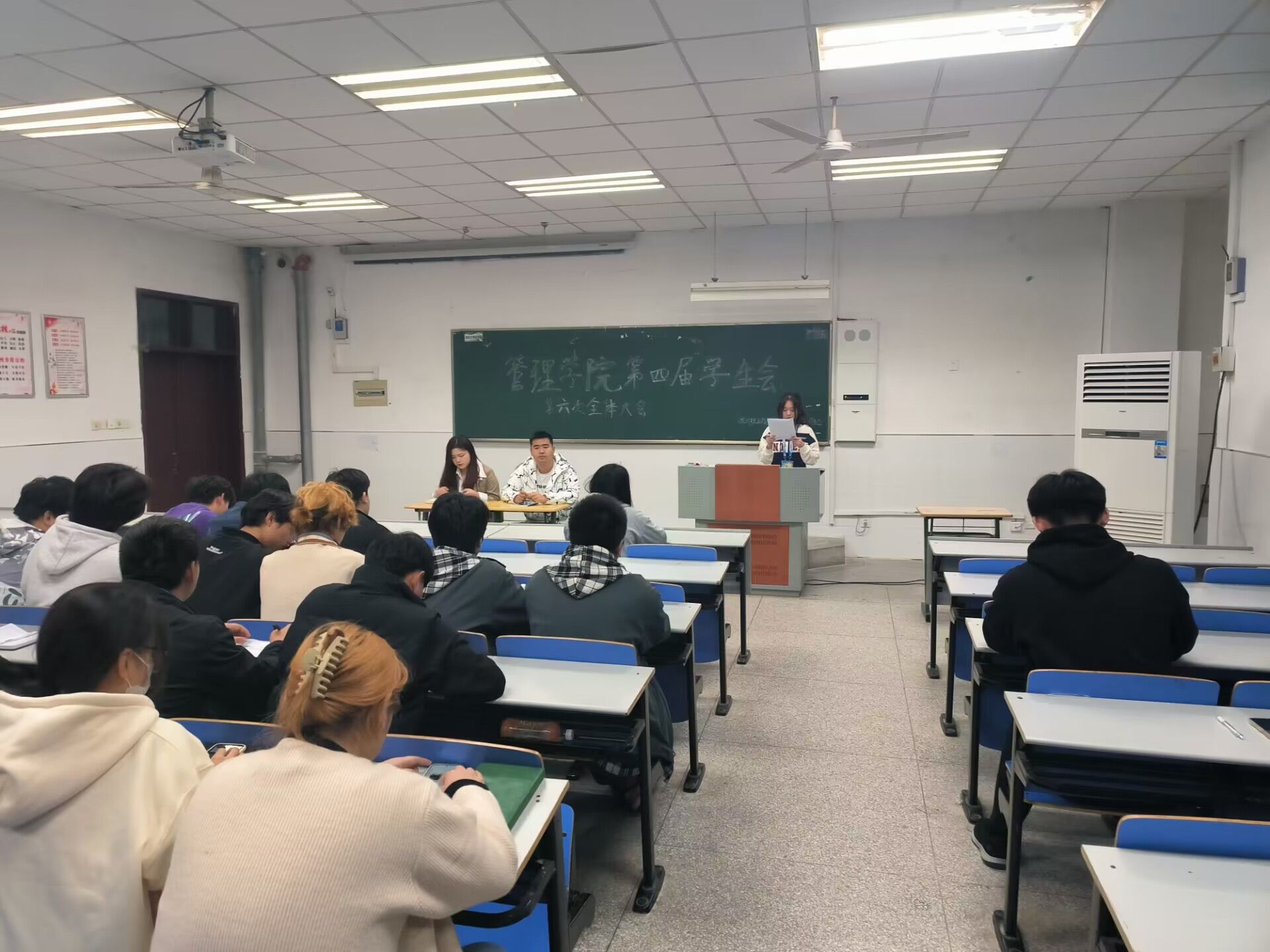 2023年3月12日晚6时,管理学院学生会在致真楼1101教室召开管理学院学生会第四届学生会第六次全体大会。
