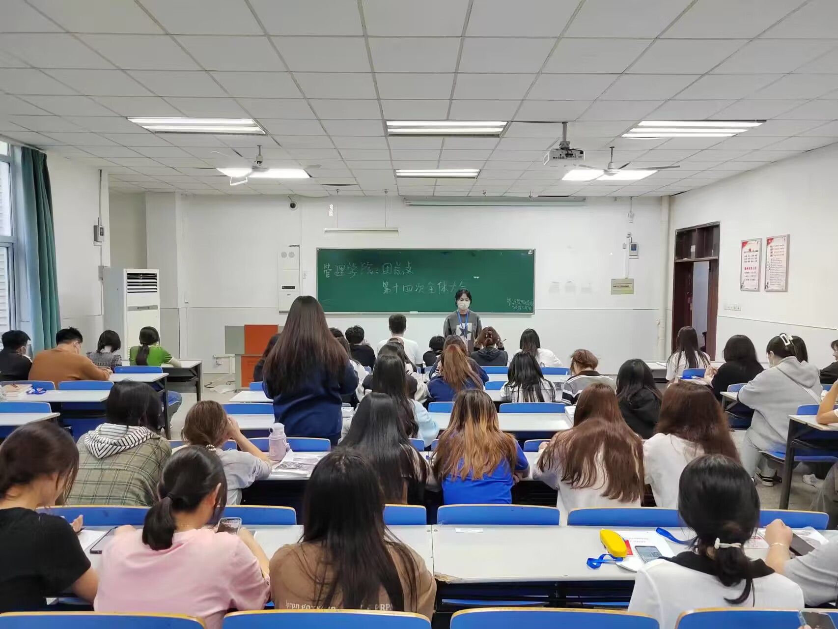 为进一步加强团总支的组织管理,同时也为了能更好的开展工作,管理学院团总支于2023年5月7日18:30在1102教室开展了团总支第四届第十四次全体大会,本次大会由团总支副书记於美娜负责,团总支全体成员参加。