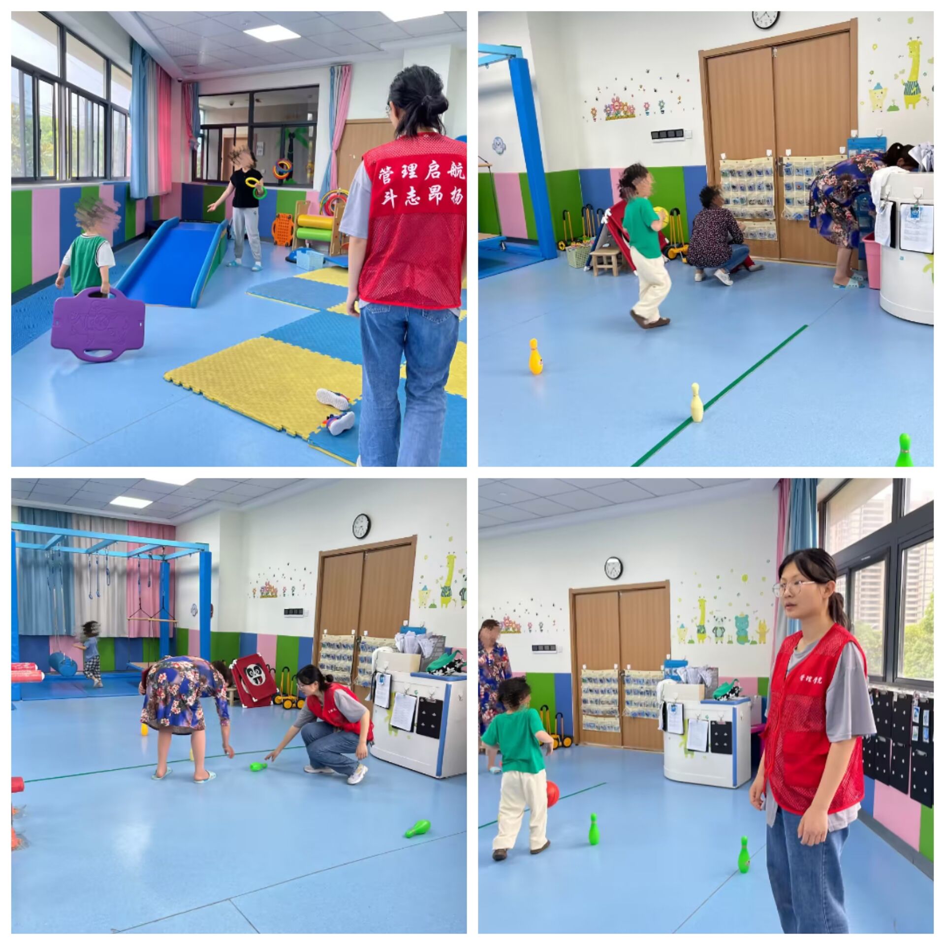 活动现场,志愿者在负责人的引导下,协助家长通过带球走、俯卧滑滑梯、串珠训练等活动与孤独症儿童进行互动,增进交流。在现场,志愿者还会帮助家长引导孩子归纳物品,现场气氛十分和谐。