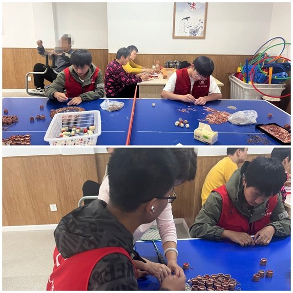 抵达目的地后,我院志愿者迅速换上红马甲投入到志愿公益活动中。活动由大学生和社区工作者共同参与,主要面向社区特殊儿童开展生活自理课程和趣味健身游戏。活动伊始,由我院志愿者和社区工作者共同教授小朋友一些基本的手工制作本领,帮助他们更好地提升自主动手能力。在课程结束之后,由我院志愿者与小朋友进行抢板凳、木头人、传接球等益智运动游戏。整个活动气氛热烈,小朋友们积极参与活动,他们也展现出乐观开朗的精神面貌。