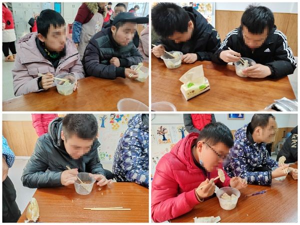 活动当天,志愿者们早早地来到星星家园,准备相关食材。活动伊始,志愿者们首先向“星星”孩子们介绍冬至的由来和习俗,让他们对这一传统节日有了简单的概念认识。随后,在志愿者们和家长们的细心指导下,“星星”孩子们便也踊跃主动的加入了包饺子大军中。有的孩子在擀面皮,有的孩子在和馅,大家相互协作,画面其乐融融,不一会功夫,一排排美味精致的“爱心饺子”便摆满了桌面。在品尝了自己的劳动成果后,志愿者们也陪同“星星”孩子们将一袋袋爱心饺子送给社区里的孤寡、残疾老人,让他们也能在冬至日吃上热气腾腾的一碗温暖饺子。