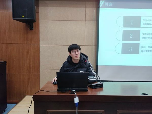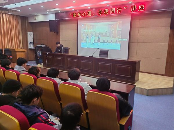 讲座伊始,张宇老师与我院学子积极互动,以金龙拍拍操游戏作为本次讲座的导入部分。我院学子积极响应,以娱乐欢快的心情静静聆听讲座的内容。张宇老师从什么是阳光心理,如何保持阳光心理,阳光心理的益处,如何面对心理问题四个方面讲授,层层递进,引导我们面对生活和学习时,要保持自信,要保持一颗乐观的心。此外,通过案例分析,教育我们一定要建立一个良好的人际关系。如果我们遇到了心理危机,要积极寻求专业教师的心灵帮助和专业机构的心理咨询。最后,张宇老师给我院学子观看了心理视频“两个我”。同学们认真观看,并在看完后纷纷表示自己进一步了解了心理学知识,在未来的人生中也会积极面对生活,保持阳光心理。
