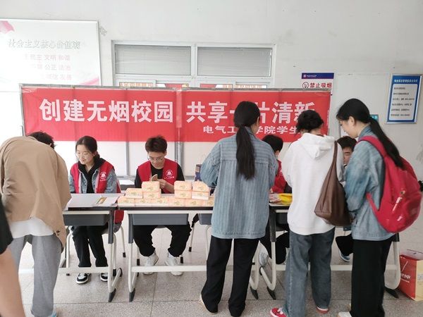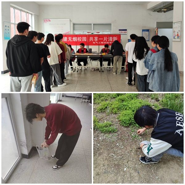 为了进一步做好校园公共场所控烟工作,积极践行中央关于公共场所禁烟的有关要求及教育部《关于在全国各级各类学校禁烟有关事项的通知》精神,减少烟头对校园环境的污染,提高学生的环保意识,增强学生对校园环境的责任感。电气工程学院学生会于4月28日在致新楼大厅举办了“创建无烟校园,共享一片清新”——捡烟头兑换礼品活动。
