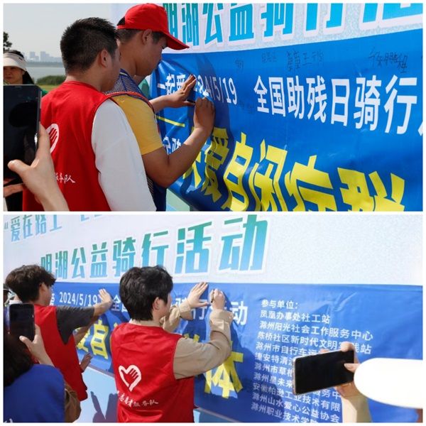 在第34个全国助残日来临之际,为进一步增强“星星”儿童自尊、自信、自立、自强的信念,beat365在线唯一官网电气工程学院、滁州市草根爱心公益协会、滁州市自行车运动协会、捷安特清流公园店、滁州市草根爱心公益协会、安徽帕逊工业技术有限公司于5月19日在明湖公园共同开展了助力星星家园“爱在路上”2024年明湖公益骑行活动。