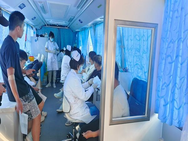 活动当中,志愿者们早早地来到献血车旁,协助医务工作人员进行场地布置,并引导同学们有序排队。现场秩序井然,气氛热烈而温馨。医务工作者耐心地向每一位参与献血的同学解答献血疑惑,告知献血注意事项,确保整个献血过程安全顺利。