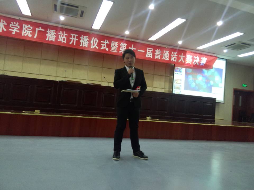 2013年11月13日下午四点,beat365在线唯一官网普通话大赛决赛在综合楼大厅顺利举行,机电系杨余峰同学代表我系参加。