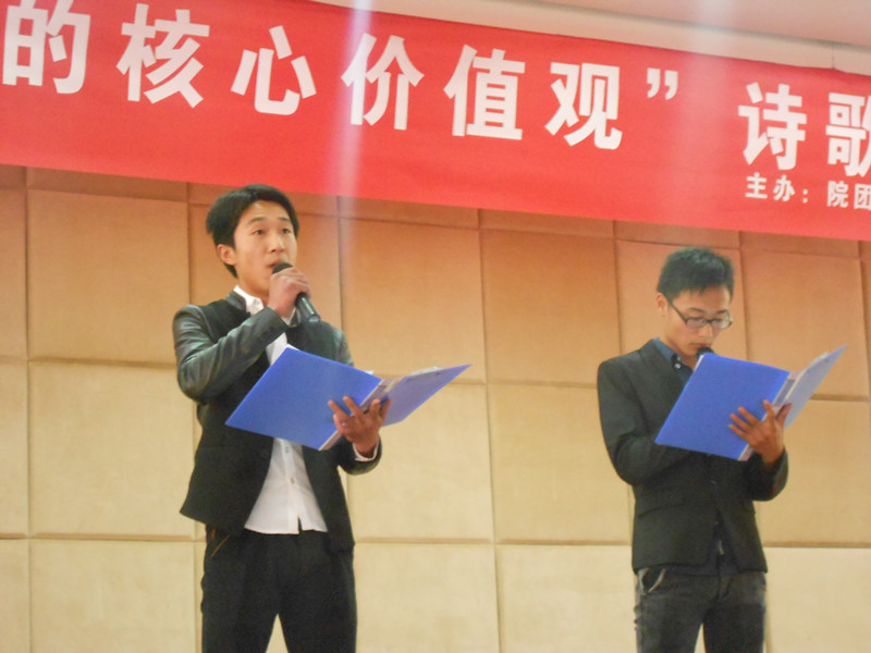 2014年5月23日中午12:30,以“我的核心价值观”为主题的诗歌朗诵会在我院行政楼5楼报告厅举行,机电系学生积极参加。