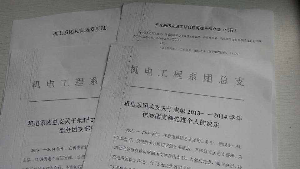 随后经过充分讨论,新一届团总支副书记和各部委员产生。大会通过了《机电系团总支规章制度》和《机电系团支部目标工作管理考核办法(试行)》。希望通过清晰的制度,规范的管理,将机电系团总支打造成一支纪律严明,有活力,有特色的队伍。最后,谢老师对这学期的主要工作做了部署,并强调了换届交接的细节工作。