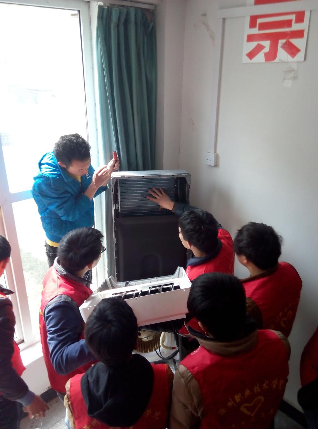 机电系一直注重发挥学生的专业技能,学以致用的开展志愿服务和社会实践活动。2014年暑期,机电系制冷专业的学子们还深入社区为居民家中的空调内机进行清洗和保养,深受居民的欢迎!志愿者们表示此次活动给他们提供了一个运用所学专业知识服务同学、服务学校、服务社会的机会,也是他们用自己的实际行动传承雷锋精神,践行社会主义核心价值观的迈出的一小步,他们会把这项特色志愿服务活动将一届一届传承下去。