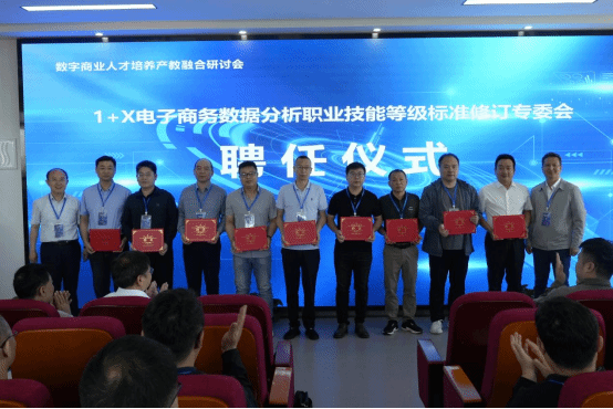 会上,北京博导前程信息有限公司向受邀专家颁发了电子商务数据分析技能等级标准专家委员会专家委员的聘书,我院商学院院长程震和电子商务系主任杨剑被聘为标准委员会委员。之后华为公司和博导公司就AI人工智能在场景的应用和对电子商务专业发展的影响做了相关报告。兰州石化职业技术大学数字商务学院院长周任慧就电子商务本科专业建设做了交流分享。