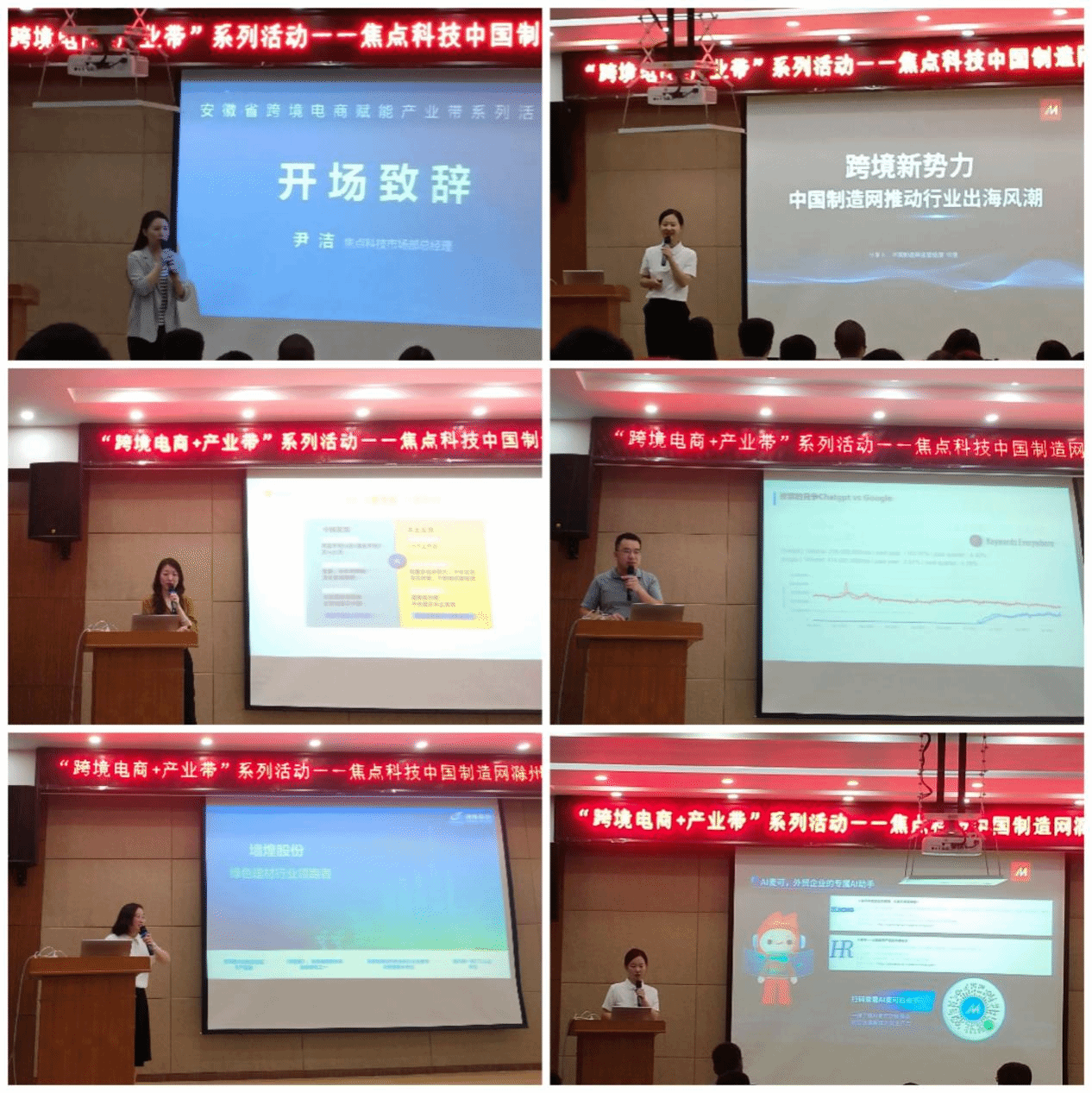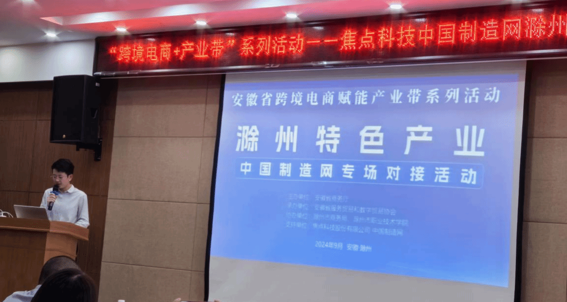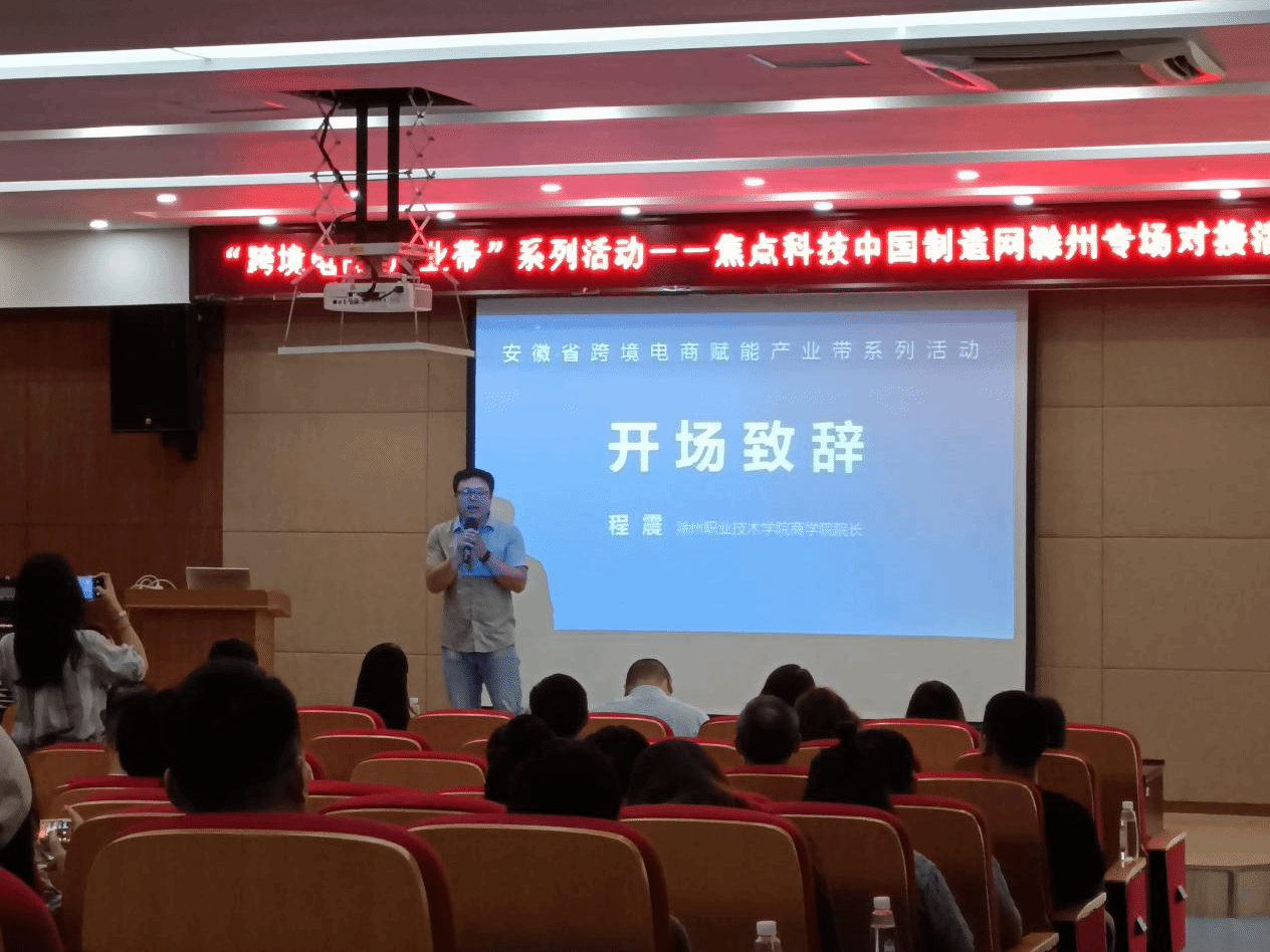 为更好与产业融合,及时了解行业发展趋势,9月13日下午,由安徽省商务厅主办,滁州市商务局、beat365在线唯一官网协办的“跨境电商+产业带”焦点科技中国制造网滁州专场活动在南阶205成功举行。由安徽省服务贸易和数字贸易协会市场部部长郭倩主持,商学院院长程震、焦点科技市场部总经理尹洁、中国制造网运营专家何意等嘉宾出席了活动并讲话,与会的还有六十余家企业代表。