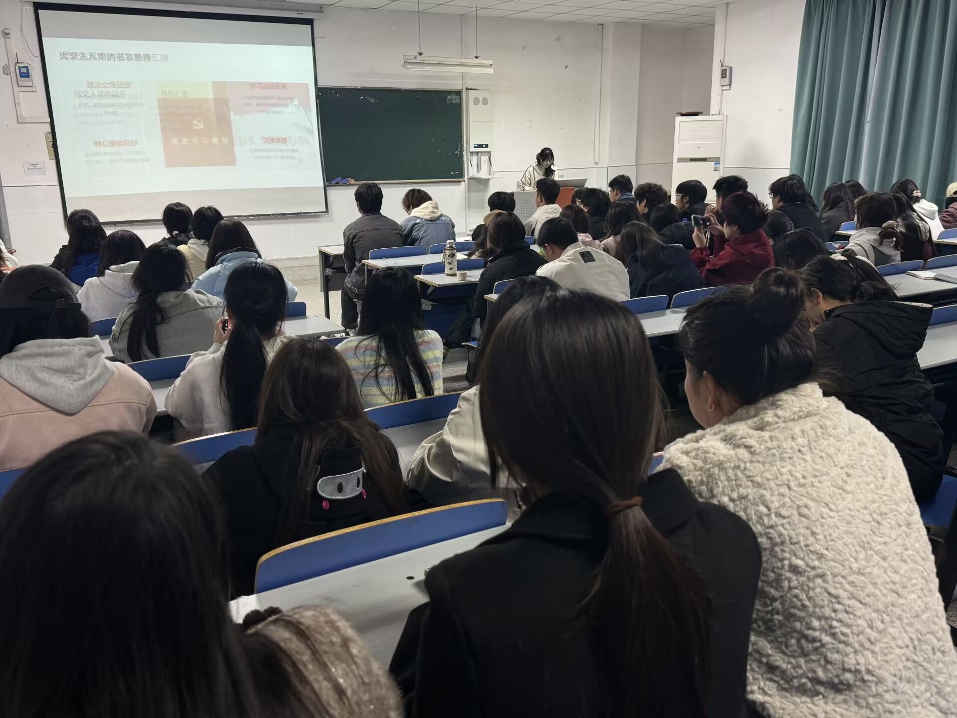 党课围绕“为什么入党”“入党后要做什么”以及“如何成为一名合格的共产党员”等核心问题,深入浅出地阐述了党的光辉征程、伟大成就和历史使命。通过回顾中国共产党的奋斗历程,同学们深刻感受到了党的伟大和正确,更加坚定了听党话、跟党走的决心。端正入党动机,明确入党不是为了个人私利,而是怀着对党的信仰、对人民的热爱,立志为共产主义事业奋斗终身。同学们深刻认识到,应努力学习党的先进理论,用习近平新时代中国特色社会主义思想武装头脑;在学习和生活中勇挑重担,发挥先锋模范作用;积极参与志愿服务与社会实践,全心全意为人民服务,以实际行动践行党的宗旨,不断向党组织靠拢。