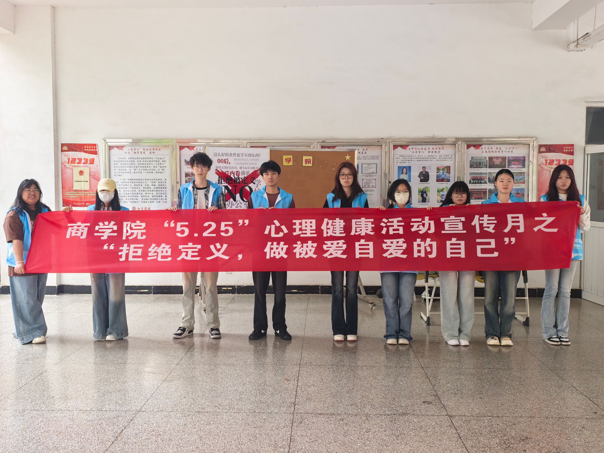 为提升大学生的心理健康意识,倡导积极的自我认知,引导学生摆脱外界刻板印象的束缚,关注自身心理健康,以独特的姿态绽放青春,商学院于5月25日成功开展了“拒绝定义,做被爱自爱的自己”心理解压主题活动。活动一经开展,便吸引了校内众多同学的关注与积极参与,现场气氛热烈,反响强烈。