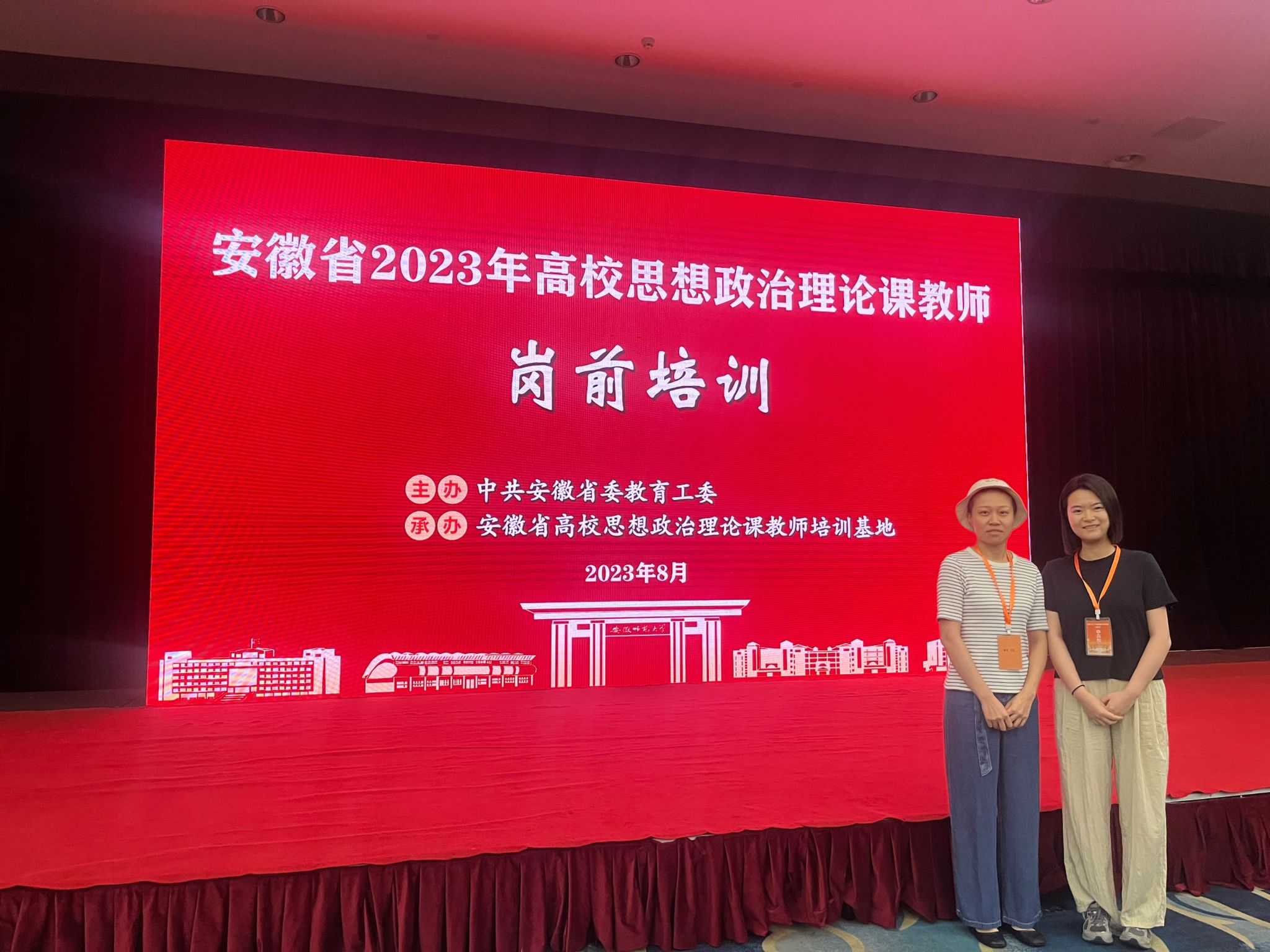 8月21日至24日,安徽省2023年高校思想政治理论课教师岗前培训在芜湖举行。此次培训由中共安徽省委教育工委主办、安徽省高校思想政治理论课教师培训基地(安徽师范大学)承办,beat365马克思主义学院组织张娟娟、陈从洋两位新进教师参加了此次培训。