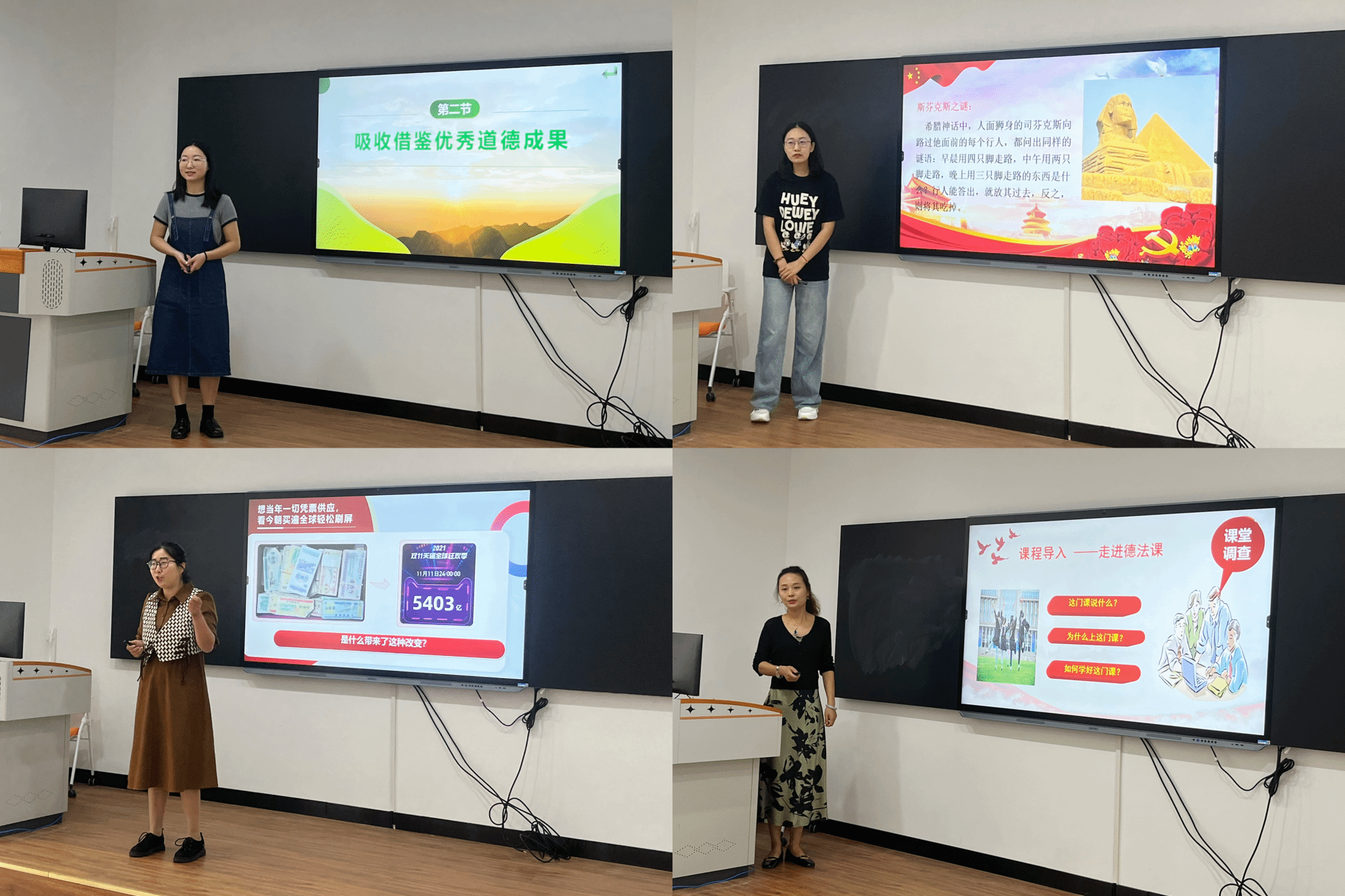 此次公开课分为观摩课和汇报课两种类型。周明珠、李明欣和赵亚丽三位新教师分别讲授了《思想道德与法治》《毛泽东思想和中国特色社会主义理论体系概论》等课程相关教学内容,冯研老师进行了观摩课教学和个人述职。教学展示结束后,考核组分别就青年教师们在教学主题、教学内容、教案设计、教学课件、课堂互动等方面存在的问题进行了专业的点评和细致指导,新进教师表示会根据评审的意见和建议,进一步优化教学设计,打磨教学内容,在教学实践中不断提升教学质量和水平。