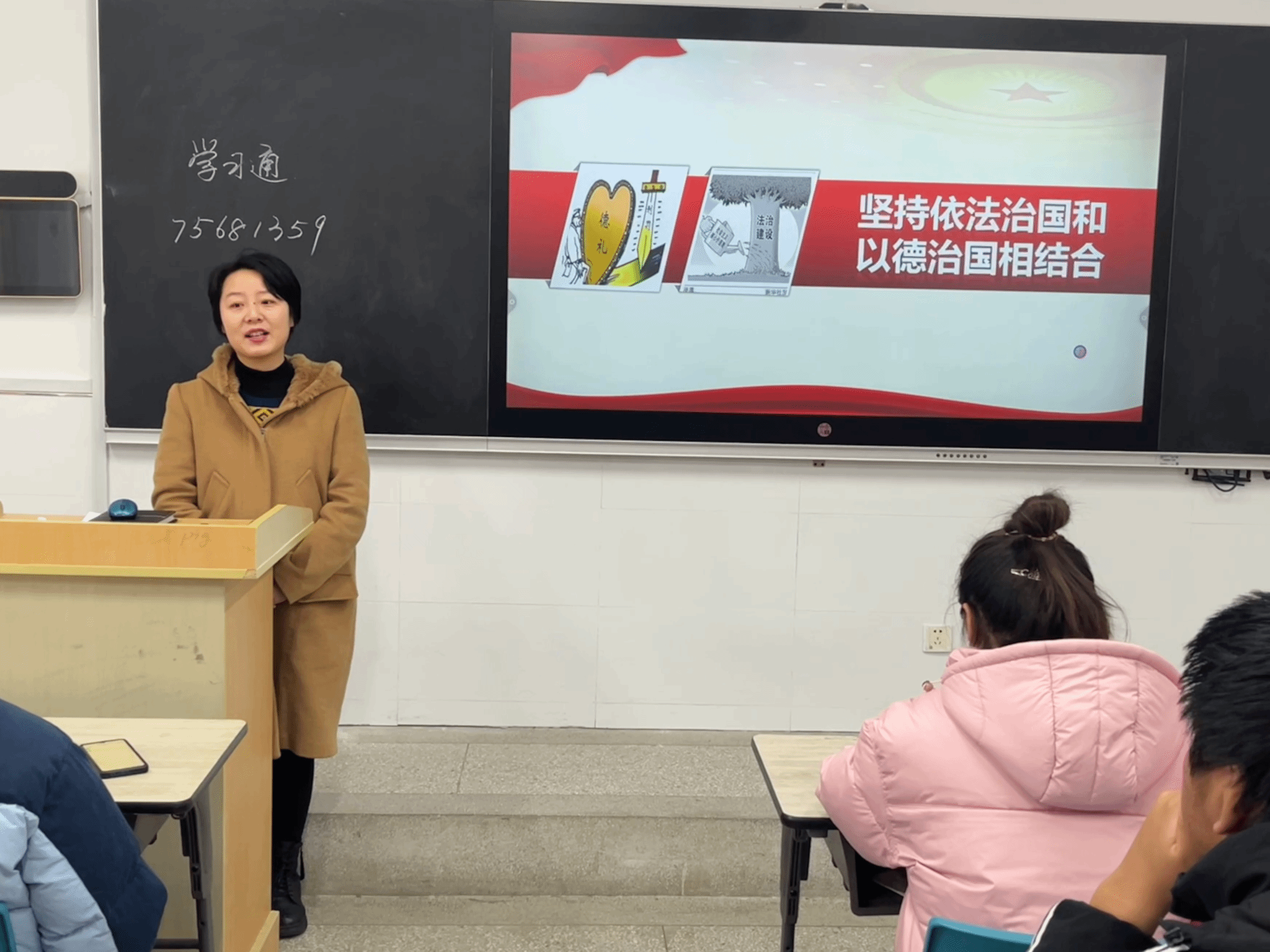 12月19日,袁莺来到beat3651301教室为2023级市场营销(2)班的同学上了一堂主题为“坚持依法治国和以德治国相结合”的示范课。袁莺从依法治国和以德治国的联系和区别、如何坚持法治和德治相结合推进依法治国的进程以及新时代青年如何做到德法兼修这三个方面层层设问、循序渐进、递进剖析坚持全面依法治国所遵循的原则。在讲述“法治和德治的联系和区别”这一部分,更是结合了当下热点事件,通过提问“你心目中的良法是什么样的?”“是否该给老年人让座?”等问题引发学生思考,纷纷发表自己的观点。袁莺以扎实严密的理论逻辑,丰富生动的案例,精心设计层层递进的课堂互动,深受学生们欢迎。在座师生深受启发,示范课巡讲活动取得良好成效。