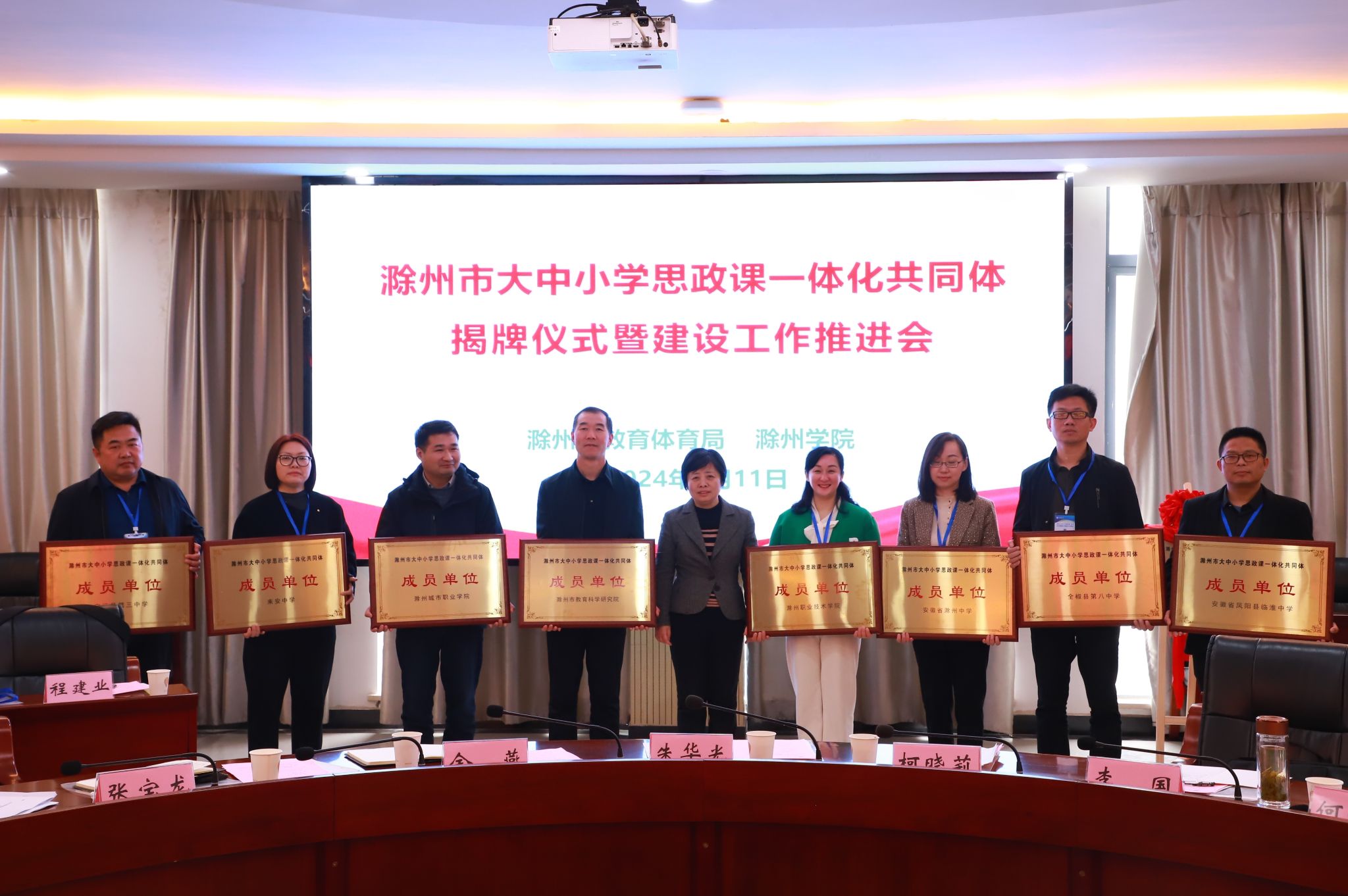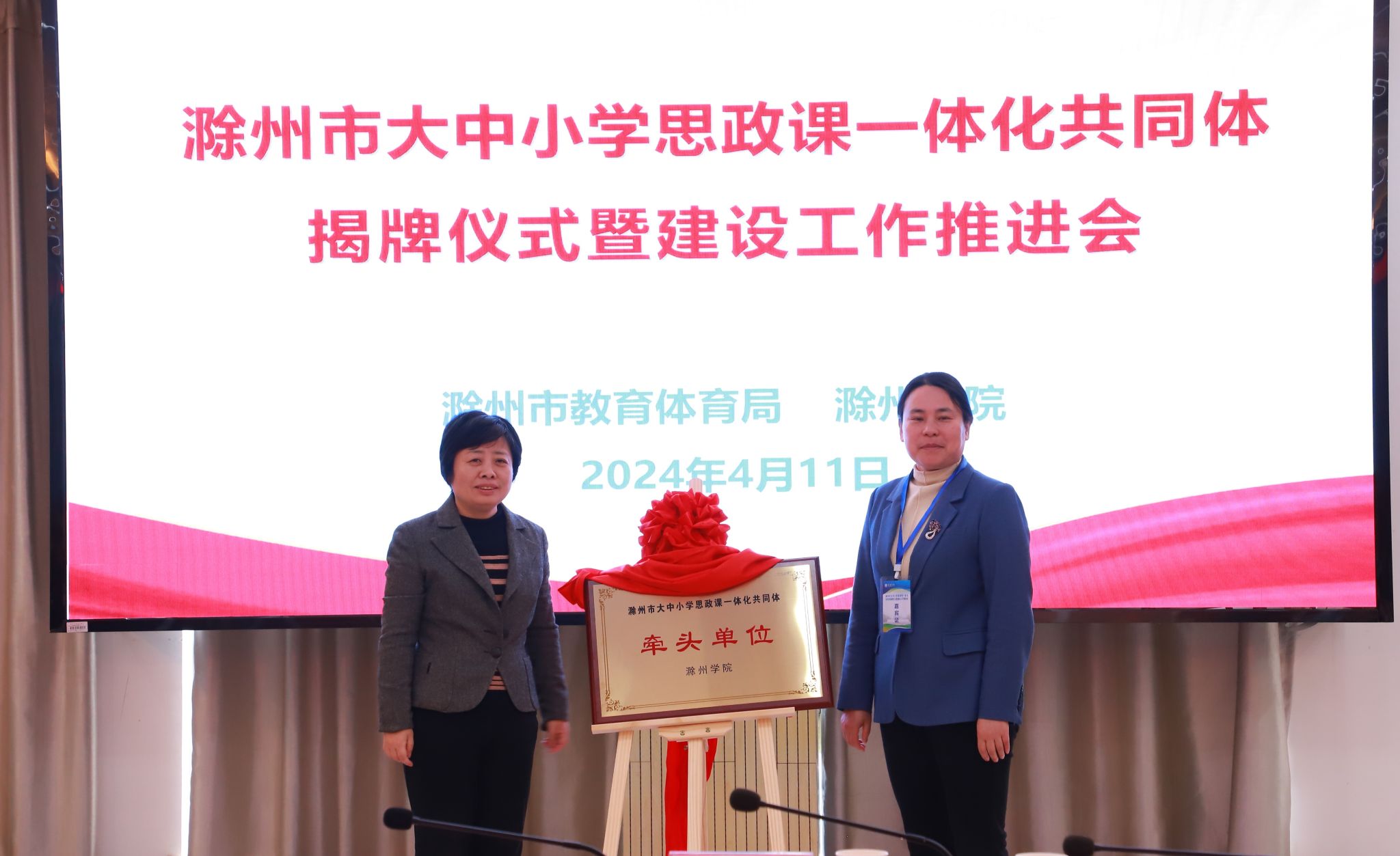 2024年4月11日,滁州市大中小学思政课一体化共同体揭牌仪式暨建设工作推进会在滁州学院召开。会议由滁州学院和滁州市教育体育局联合举办,滁州市大中小学思政课一体化共同体成员单位负责人、滁州市各县、市、区教研员、部分思政课教师代表共50余人参加会议。beat365在线唯一官网马克思主义学院副院长张家莉代表共同体成员单位参会。