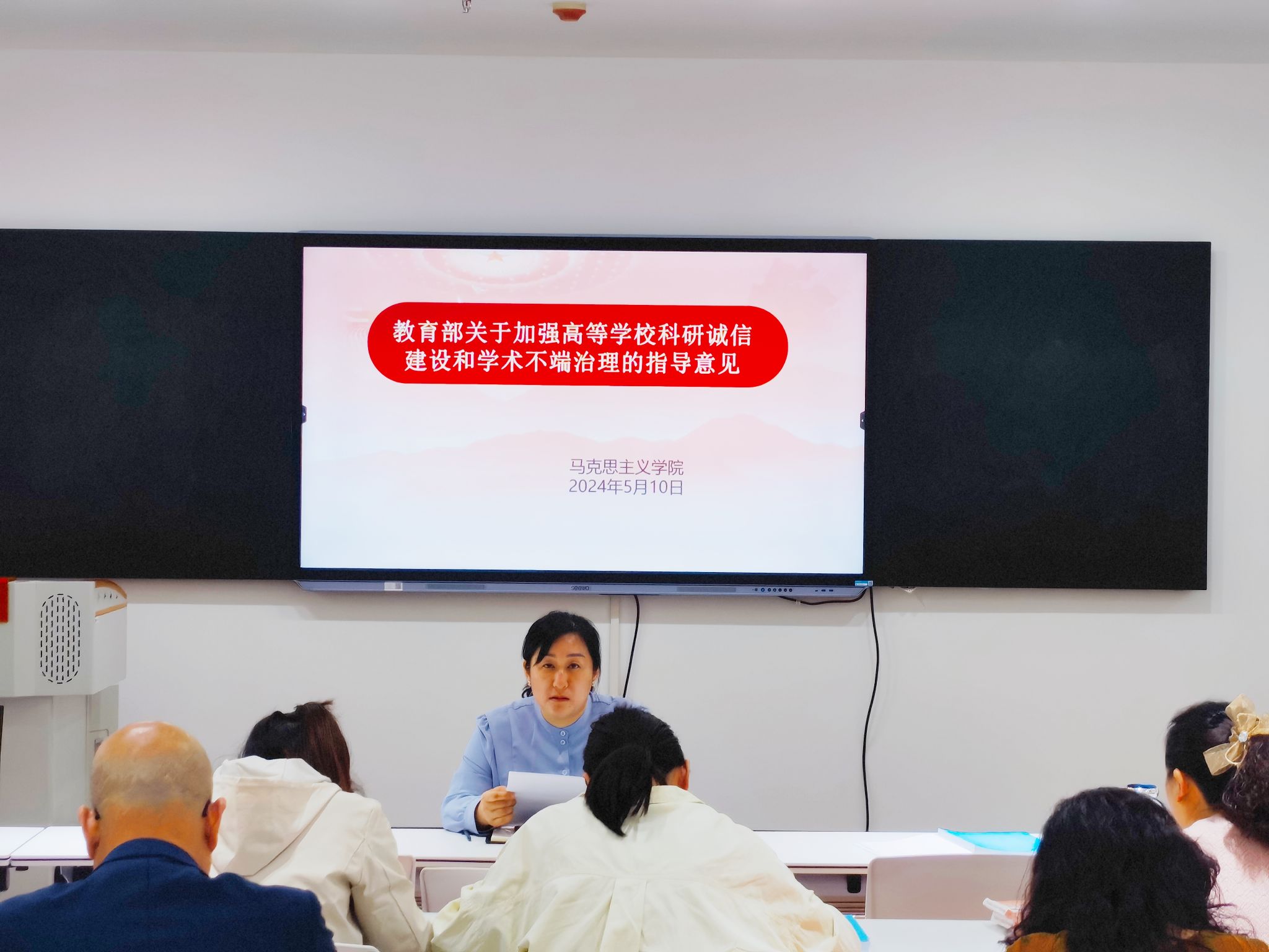 为充分落实《教育部关于加强高等学校科研诚信建设和学术不端治理的指导意见》文件精神,进一步夯实学术规范理念,营造风清气正的学术氛围,5月10日,马克思主义学院在综合楼309召开科研诚信建设专题学习会。会议由马克思主义学院党总支书记、院长孔金主持,全体教师参加。