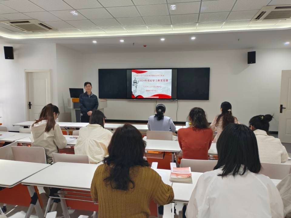 5月10日,马克思主义中国化教研室党支部书记汪立超在“大思政课”数字研学中心上党纪学习教育专题党课,支部全体党员参加。