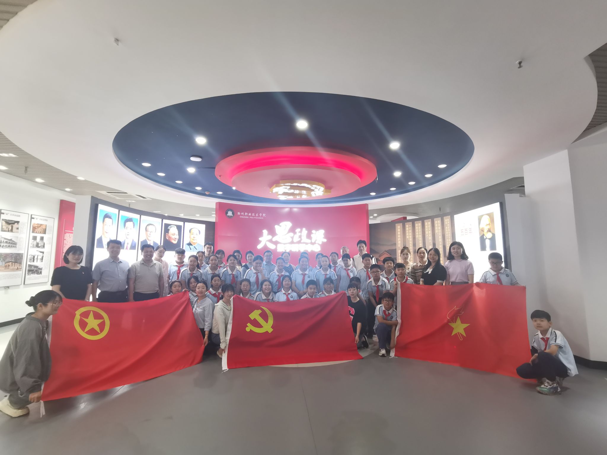 5月21日,滁州市紫薇小学党员、团员和少先队员代表一行约50人来到beat365“大思政课”数字研学中心参观交流,马克思主义学院党总支书记、院长孔金热情接待并作介绍解说。