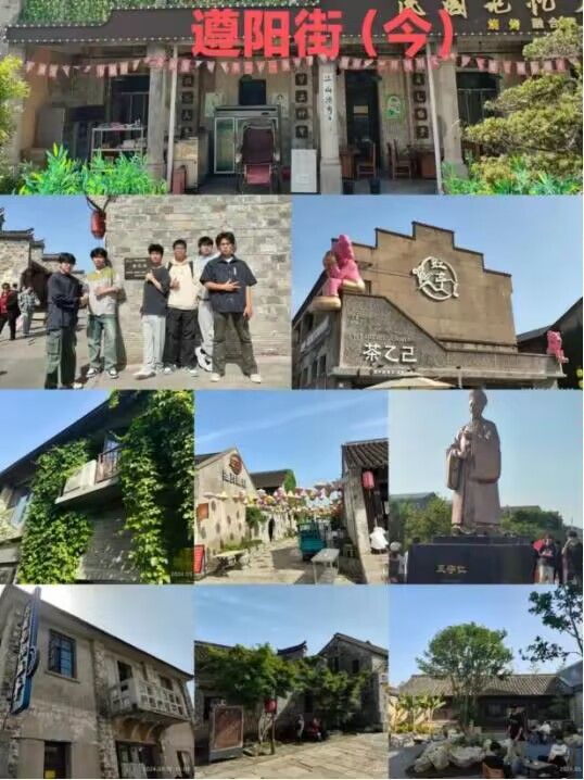 晏然老师先将同学们分组再提出调研要求后带领同学们走进了金叶小区,由熟悉老旧小区改造的金叶一村物业经理许成沿着相关观察点为同学们详细介绍了小区改造及其变化情况。金叶小区始建于上世纪90年代,改造前存在着基础设施落后、居民生活环境脏乱差、文娱活动匮乏等问题。2023年,该小区实施了楼房墙面粉饰、楼顶渗漏修复、水电管道更新、垃圾分类投放、道路修缮、安装健身器材、新建绿化带等改造项目。如今,金叶一村的面貌焕然一新,居民的生活质量也得到了提升。随后,师生们前往遵阳街,在此同学们了解到该地名是因古人王阳明而命名的,而如今遵阳街通过改造,将遵阳街古朴的建筑风格和新时代时尚相结合,改造成独一无二的特色街区。同学们还参观了旧粮食局大楼、老汽车站、胡家大楼等,知晓了其悠久的历史文化。同学们在认真听讲和参观的过程中,对滁州的文化有了更深入的了解。
