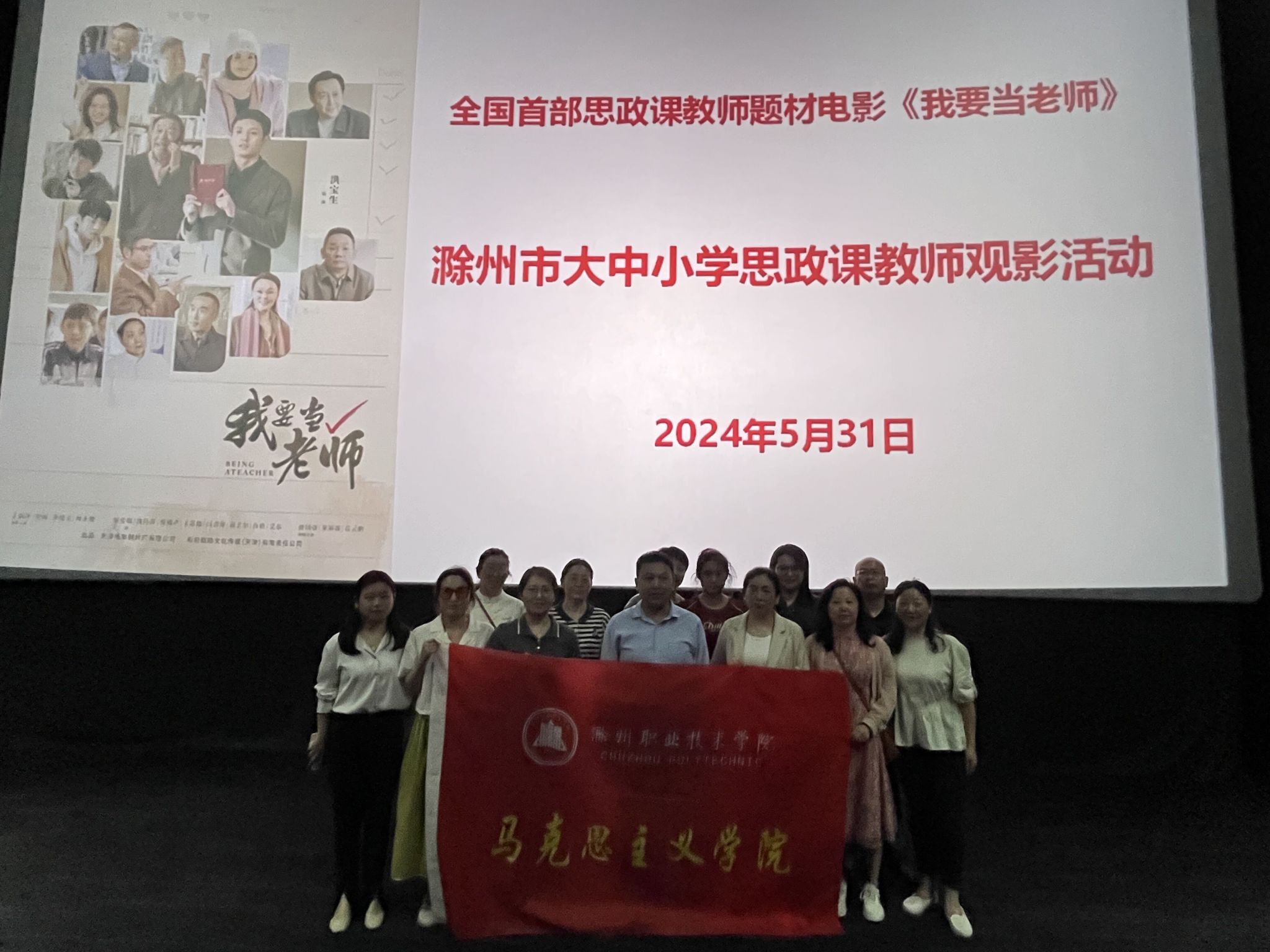 为深入学习贯彻落实习近平总书记关于思政课建设的重要讲话和指示批示精神,按照相关工作部署,5月31日,马克思主义学院由党总支书记、院长孔金带领党员教师参加滁州市大中小学思政课教师观影活动开展主题党日活动,本次观影活动观看的电影是思政教师主题影片《我要当老师》。