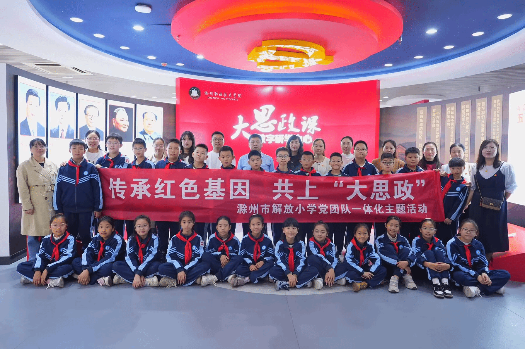 10月17日,滁州市解放小学党员、团员和少先队员代表一行来到beat365“大思政课”数字研学中心参观交流,马克思主义学院党总支书记、院长孔金热情接待并作解说。