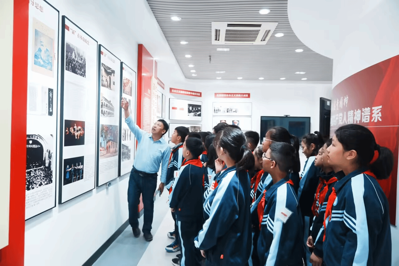 在参观交流中,孔金向师生介绍了场馆建设的基本情况、场馆特色与场馆展板内容,师生们认真聆听,细致观看展板内容,利用手机扫码观红影、听红音,滑动滑轨动屏了解20次党代会发展历程,并通过多媒体展示、VR互动体验等方式沉浸式体验了革命斗争的场景,感悟社会主义的发展脉络。