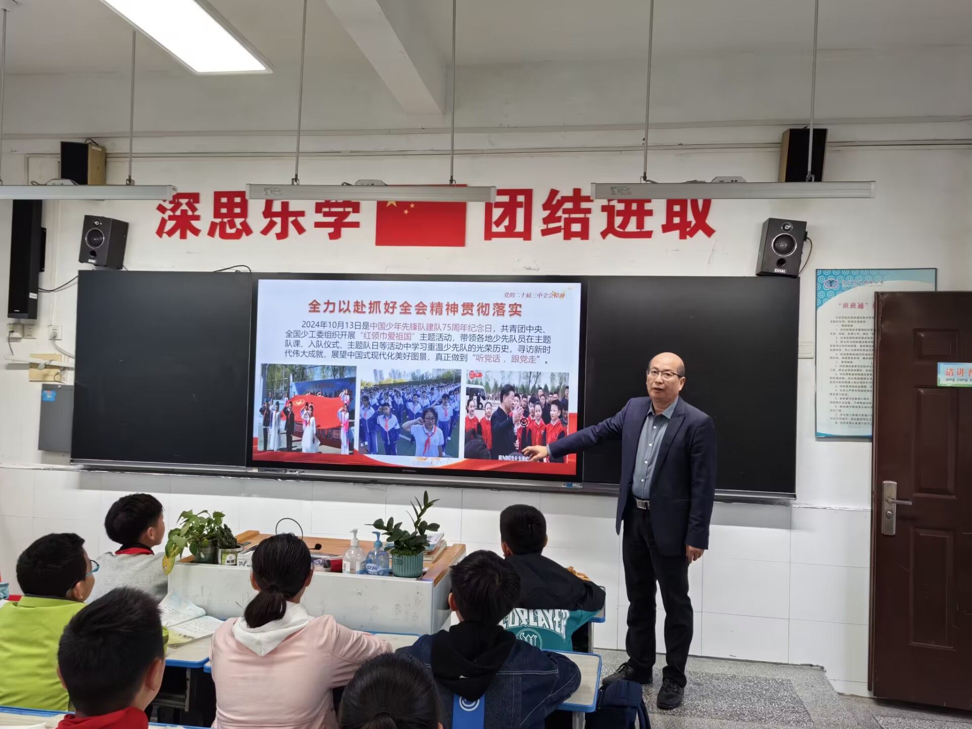 焦老师首先介绍了党的二十届三中全会召开的时间、地点、通过的《中共中央关于进一步全面深化改革、推进中国式现代化的决定》的主要内容,强调了党的二十届二中全会以来党和国家事业取得的重大成就;接着焦老师和同学们一起畅聊了我们安徽省,我们滁州市以及我们琅琊路小学这几年来的变化和成绩,面对这些变化和成绩,同学们不仅感到骄傲和自豪,而且更对美好的未来充满了信心和期待;最后焦老师还把这次宣讲活动与今年中国少年先锋队建队75周年的主题活动“红领巾爱祖国”有机结合起来,希望同学们现在不仅要努力学习知识,参加各种实践活动,更要明白有梦可追就是一种幸福,我们幸运地生活在这最好的时代,我们要用脚步丈量梦想,用奋斗诠释未来,用五彩斑斓的微光点亮我们伟大的祖国。
