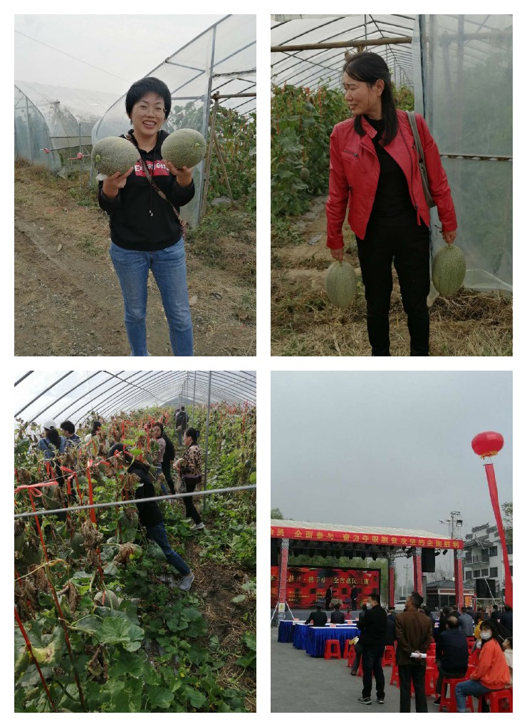 接着教师们兴致勃勃地奔赴beat365驻村扶贫干部、仓镇回民村第一书记、马克思主义学院院长王冬同志所坚守的定远县仓镇扶贫点开展考察活动。在仓镇农户胡立虎的哈密瓜种植基地,现场举办了哈密瓜采摘比赛,大家穿梭于哈密瓜种植大棚,用最快的速度找到自己心目中最大、最满意的哈密瓜,由马院工会委员作为评委现场进行评定。