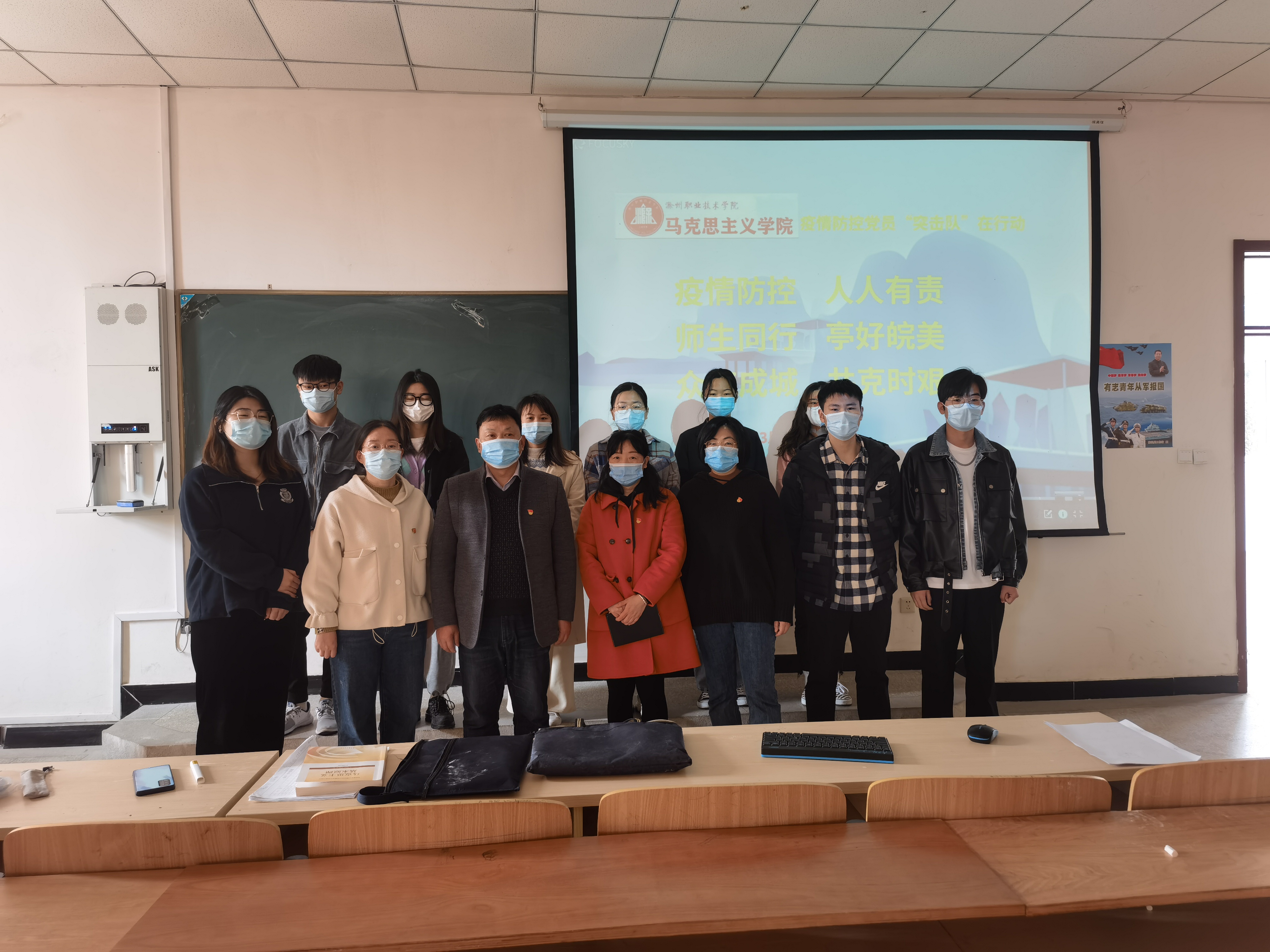 为深入贯彻落实校党委关于疫情防控工作决策部署,把疫情防控工作纪律要求落实落细,通过思政课主渠道教育引导广大学生守牢校园疫情防控的思想底线,形成坚固的疫情防控思想自觉、政治自觉和行动自觉,维护校园安全,在马院党政领导组织安排下,3月28日上午,马克思主义学院疫情防控“党员突击队”队员深入一线课堂,随堂督查思政课教师落实学校疫情防控相关要求情况。