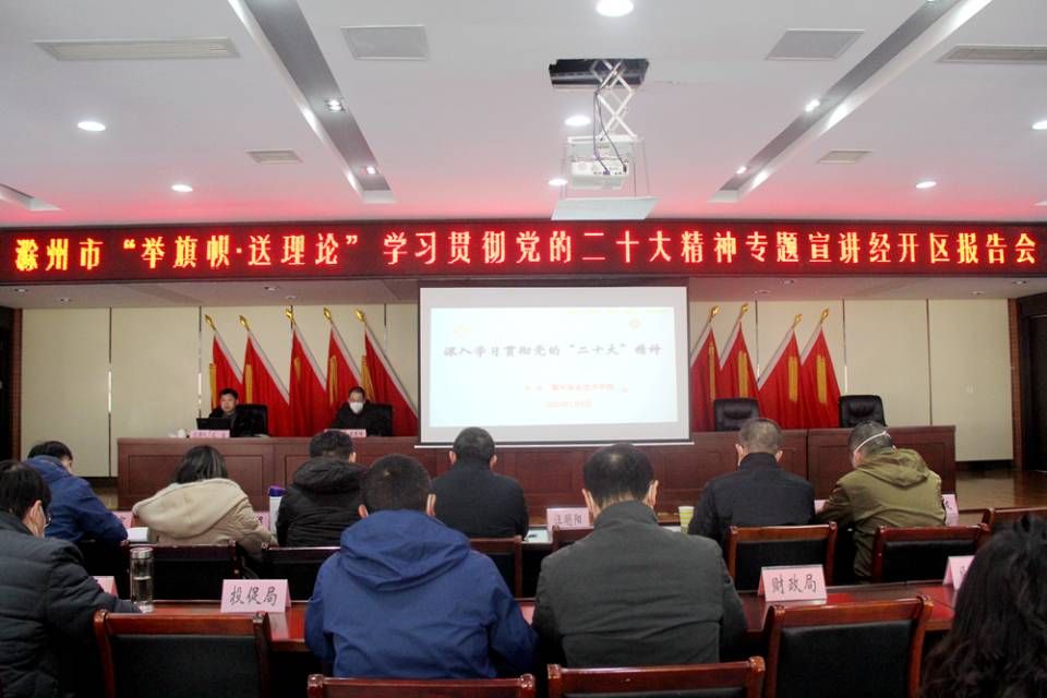 学习好、宣传好、贯彻好党的二十大精神,是当前和今后一个时期的首要政治任务。按照市委宣传部统一部署,滁州市理论宣讲团成员赶赴机关、学校、企业、农村和社区开展“举旗帜·送理论”党的二十大精神理论宣讲。滁州市理论宣讲专家库成员、马克思主义学院孔金副院长先后于12月30日、1月6日和1月13日在市农业农村局、市经开区管委会和实验中学开展党的二十大精神理论宣讲。