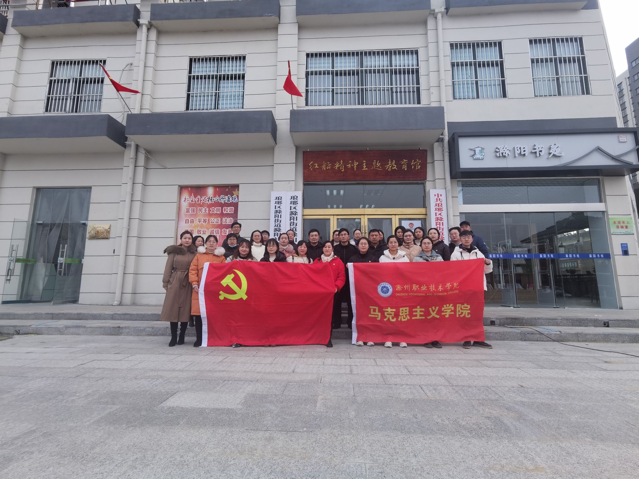 为进一步推动党的二十大精神走深走实、入脑入心,认真学习革命先辈坚定理想、百折不挠的奋斗精神,2月25日,马克思主义学院组织教师赴滁州市琅琊区滁阳社区“红船精神主题教育馆”和龙池社区“改革开放精神主题教育馆”开展特色主题党日活动。
