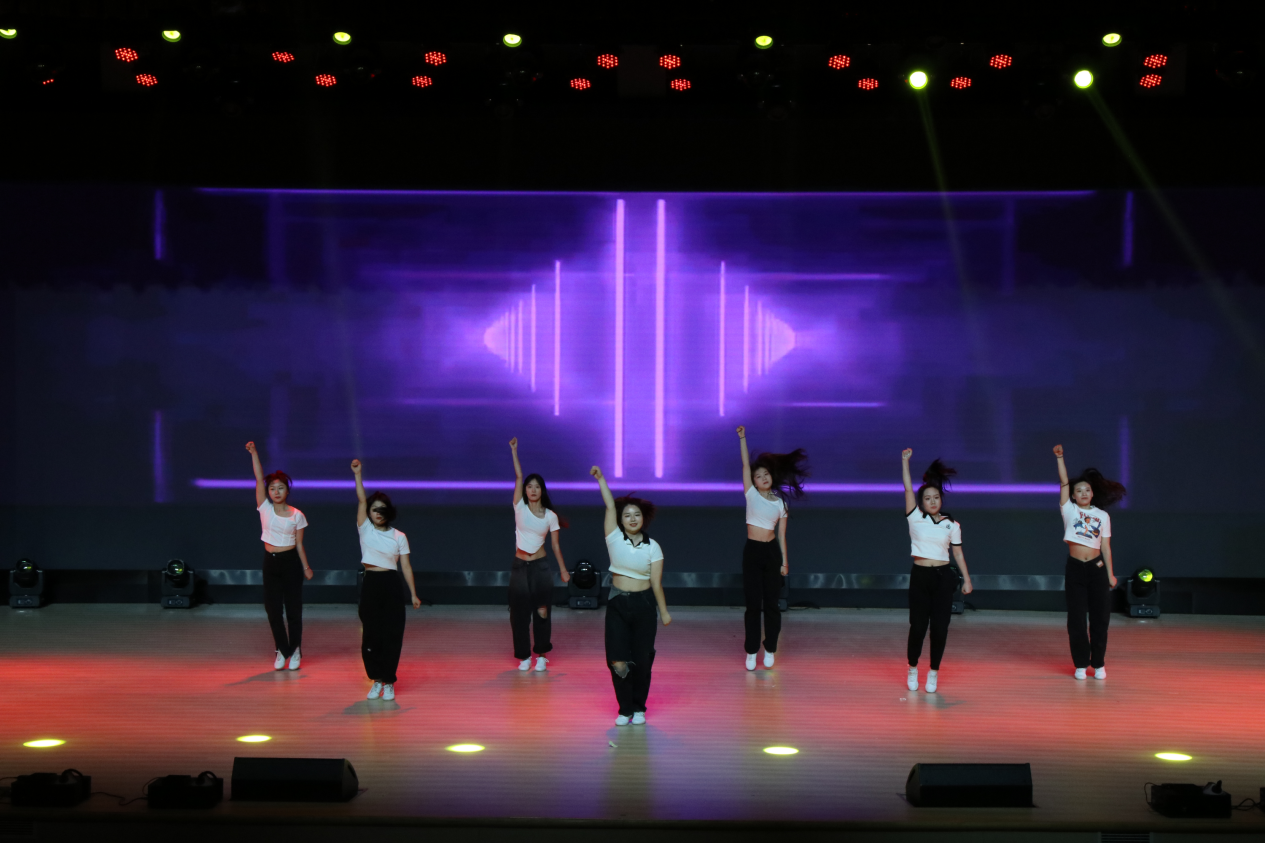 本次文艺演出共分为“忆红色经典”、“同心共抗疫”、“永远跟党走”三个篇章。通过丰富多彩的节目形式,展现了党带领人民走向伟大复兴的光荣历程、党在做出改革开放伟大决策后我们日新月异的变化以及当代大学生的青春中国梦。在“同心共抗疫”这一篇章中,智能制造学院健美操队依次上场表演,他们的表演类型分为标准操和自编自跳的艺术操。表演队员个个都精神十足,自信满满,变换多样的队形和整齐地动作赢得老师和观众的一致好评。在整个表演过程精彩不断,高潮迭起,表演队伍队形变化多彩多样,异彩纷呈,赢得阵阵掌声。