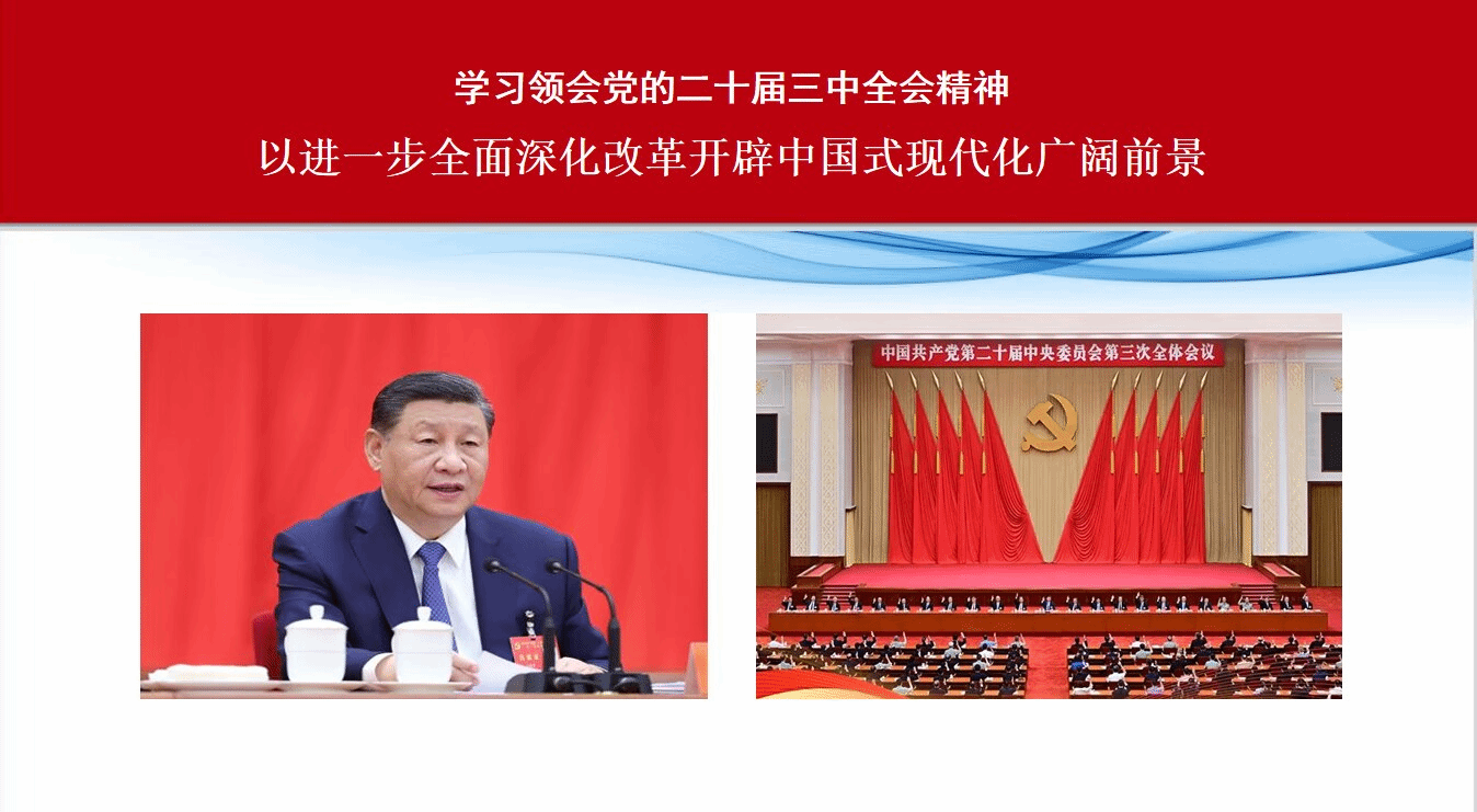 胡颖颖结合自身学习体会,传达党的二十届三中全会精神。党员老师们立足岗位职责、结合工作实际,谈学习体会、谈思想感悟、谈落实举措,切实推动学习贯彻党的二十届三中全会精神入脑入心入行。通过学习交流、碰撞思想,党员老师们进一步加深了对党的二十届三中全会精神重大意义的认识和理解,进一步坚定了落实全面深化改革任务举措的信心和决心。