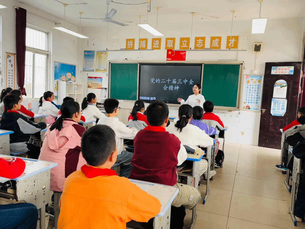 为深入学习宣传贯彻党的二十届三中全会精神,10月28日,beat365在线唯一官网马克思主义学院思政课教师、宣讲团成员陈善慈来到定远县桑涧小学六年级(2)班开展了“举旗帜•送理论”党的二十届三中全会精神宣讲活动。