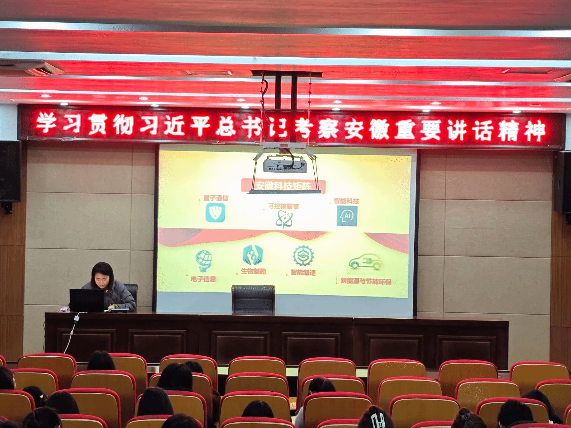 宣讲会现场气氛热烈,两位老师还与同学们进行了深入的互动交流。她们耐心解答同学们的疑惑与问题,分享了自己的学习心得与体会。宣讲会结束后,同学们认为,通过这次宣讲会,更加深入地了解了习近平总书记对安徽工作的重要指示精神,也更加清晰地认识到了自己肩负的责任和使命。许多同学表示,将把所学到的知识和理念转化为实际行动,积极参与社会实践和志愿服务活动,让改革创新成为青春远航的动力,为实现中华民族伟大复兴贡献自己的青春力量。