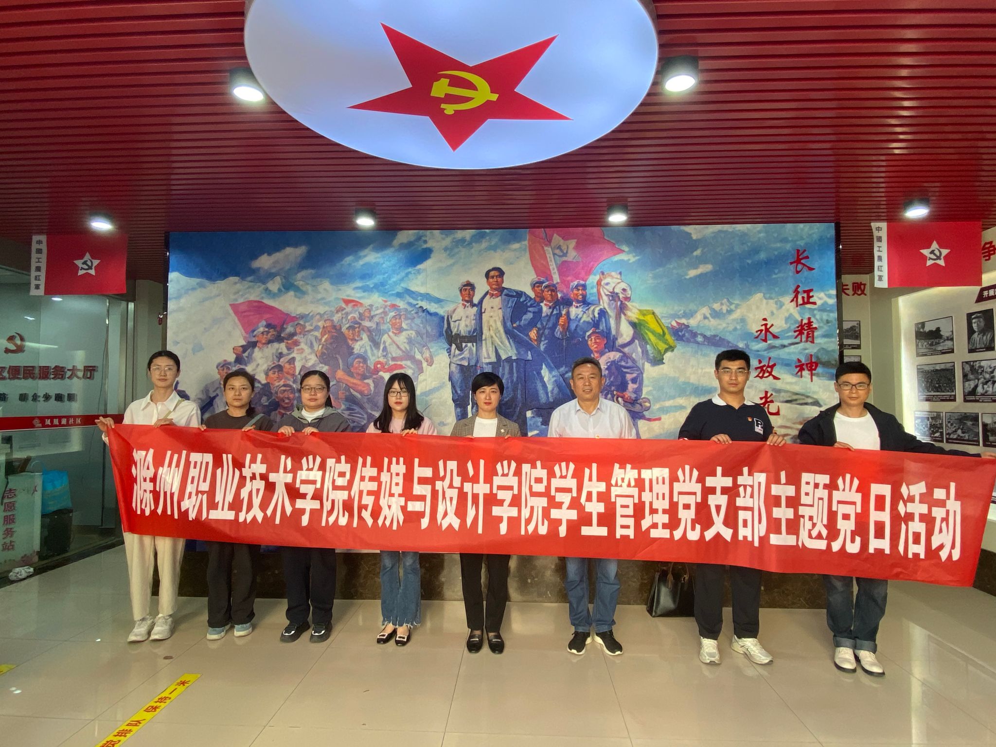 2024年是中华人民共和国成立75周年、建党103周年,为全面贯彻落实党的二十大精神,深入学习贯彻习近平总书记关于党的建设的重要思想,进一步加强党员对中华民族革命历史以及伟大民族精神的认知,5月15日下午,传媒与设计学院学生管理党支部赴滁州市凤凰湖社区长征教育纪念馆开展主题党日活动,回顾党的光辉历程和丰功伟绩,弘扬伟大的长征精神。