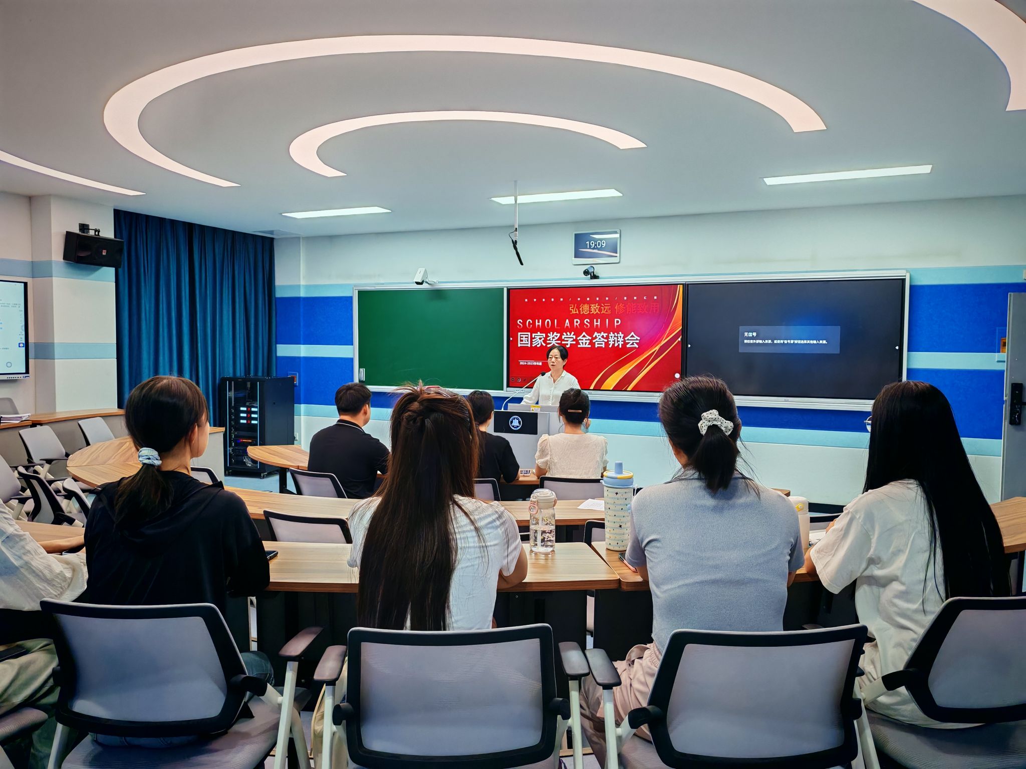 9月15日晚,本科教育国家奖学金答辩会在1202教室如期召开。本次答辩会由本科教育党支部支委会成员担任评委,三位国家奖学金候选人同台展示,25级部分学生代表作为场内观众共同参与,现场氛围庄重而热烈。