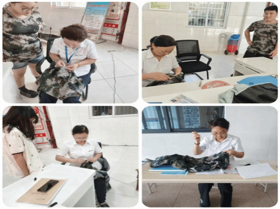 军训服是新生每日参训的“标配装备”,在高强度训练过程中,衣物出现开线、破洞等情况较为常见。考虑到多数新生缺乏缝补工具与实操经验,各公寓宿管员提前筹备针线包等物资,在楼栋大厅设立临时“缝补服务点”。宿管员凭借娴熟的缝补技艺,为学生细致处理衣物破损部位,部分宿管员还会主动对袖口、裤脚等易磨损区域进行加固处理。