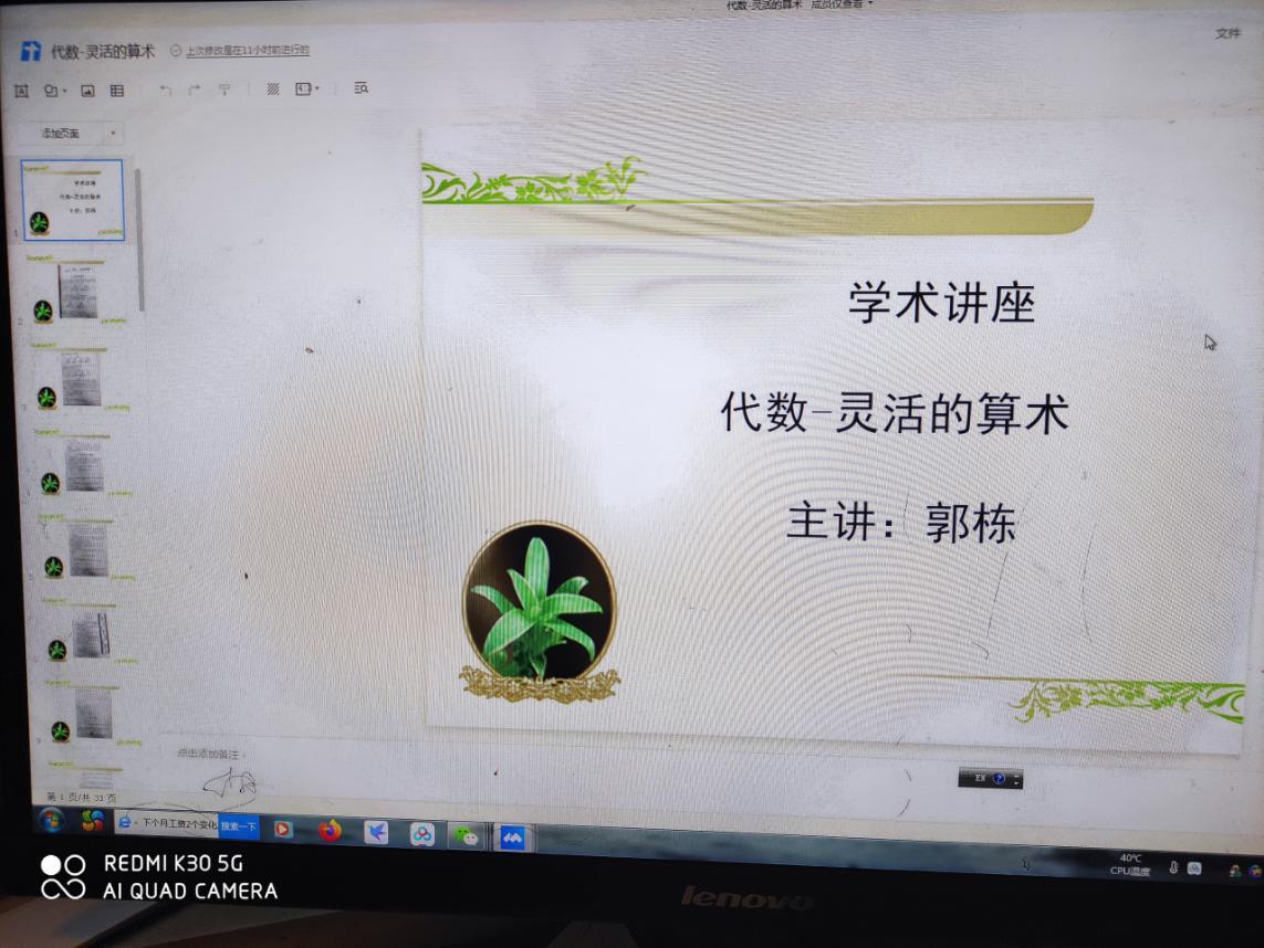 2020年6月15日晚上18:00,郭栋副教授在腾讯会议上举办了“代数-灵活的算术”的学术讲座。全校近80名同学聆听了此次讲座。