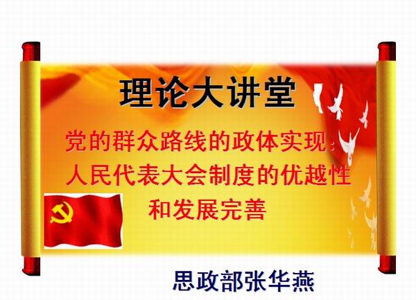 5月7日下午,基础部党总支“理论大讲堂”组织举办了第四次理论宣讲,此次理论宣讲的题目为《党的群众路线的政体实现:人民代表大会制度的优越性和发展完善》。